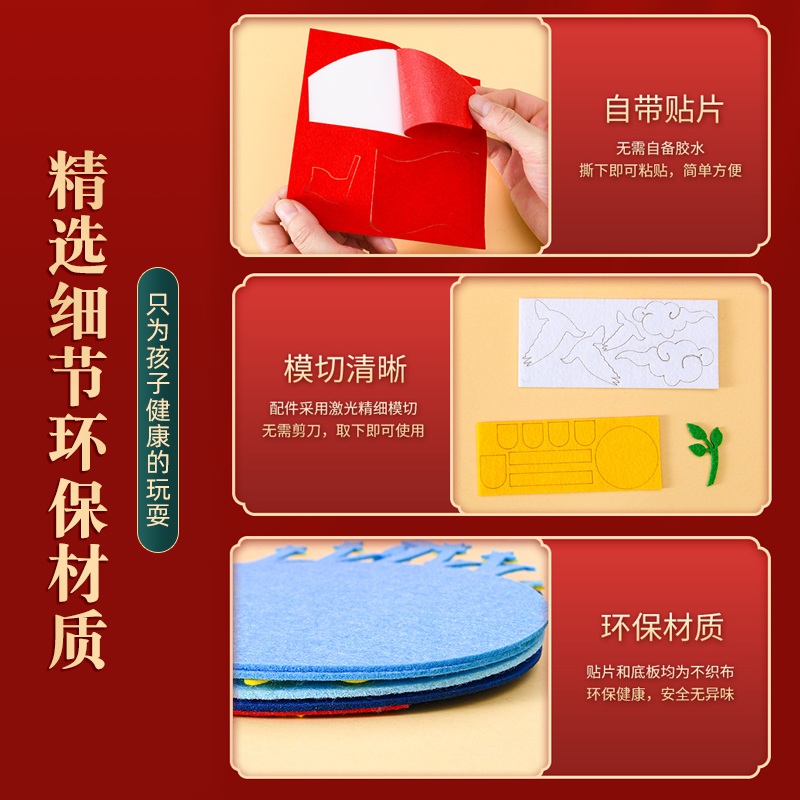 国庆节十一手工儿童挂件不织布diy材料包红色爱国教育主题挂饰幼儿园学生制作布艺粘贴画半成品套装创意玩具