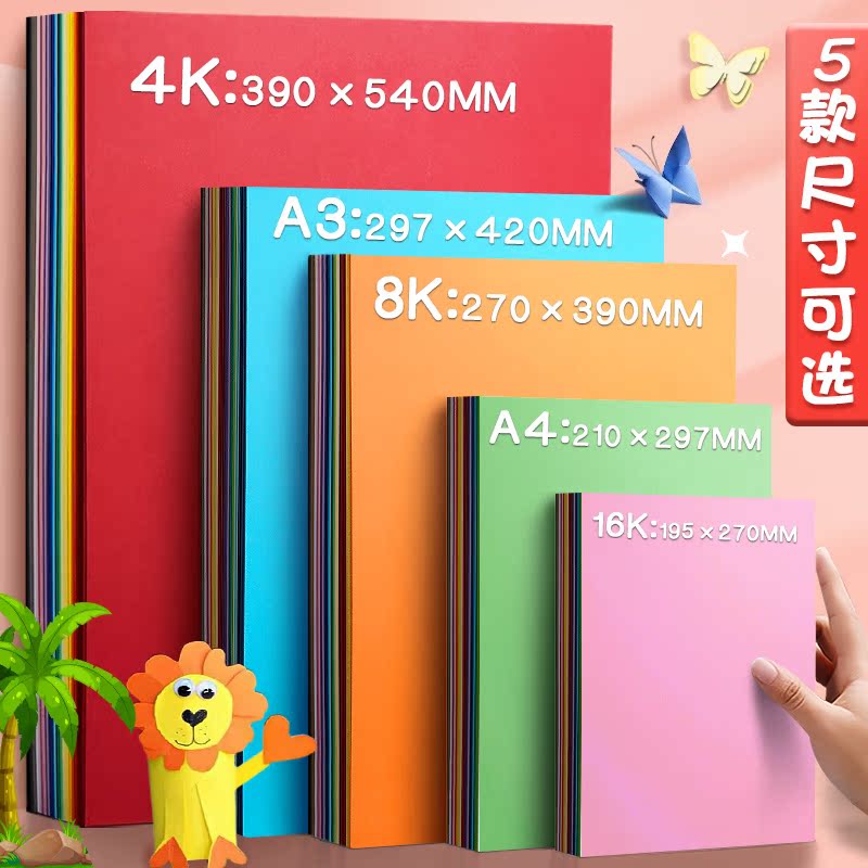 元浩彩色硬卡纸a4厚230G手工幼儿园diy制作材料儿童小学生4k色卡纸大尺寸画画a3彩纸4/16开白色黑色卡纸大号