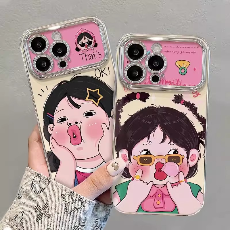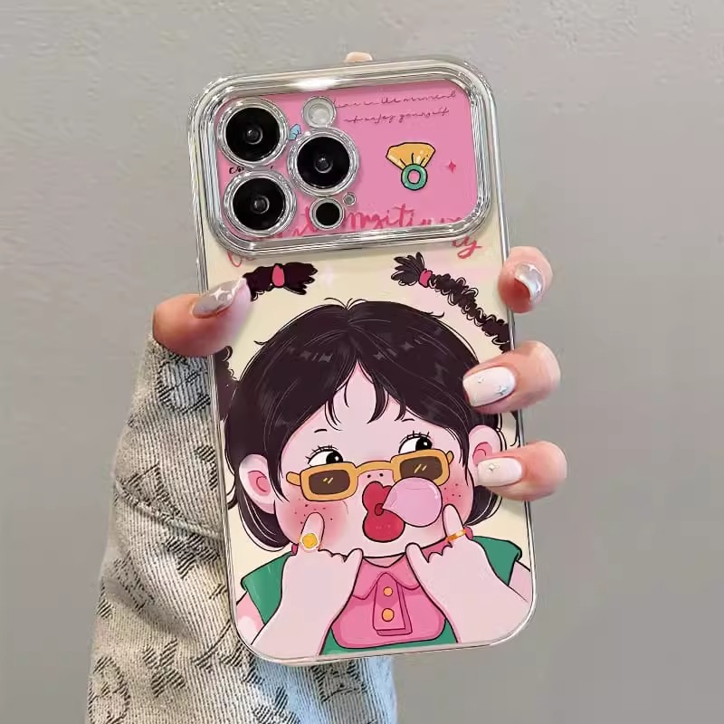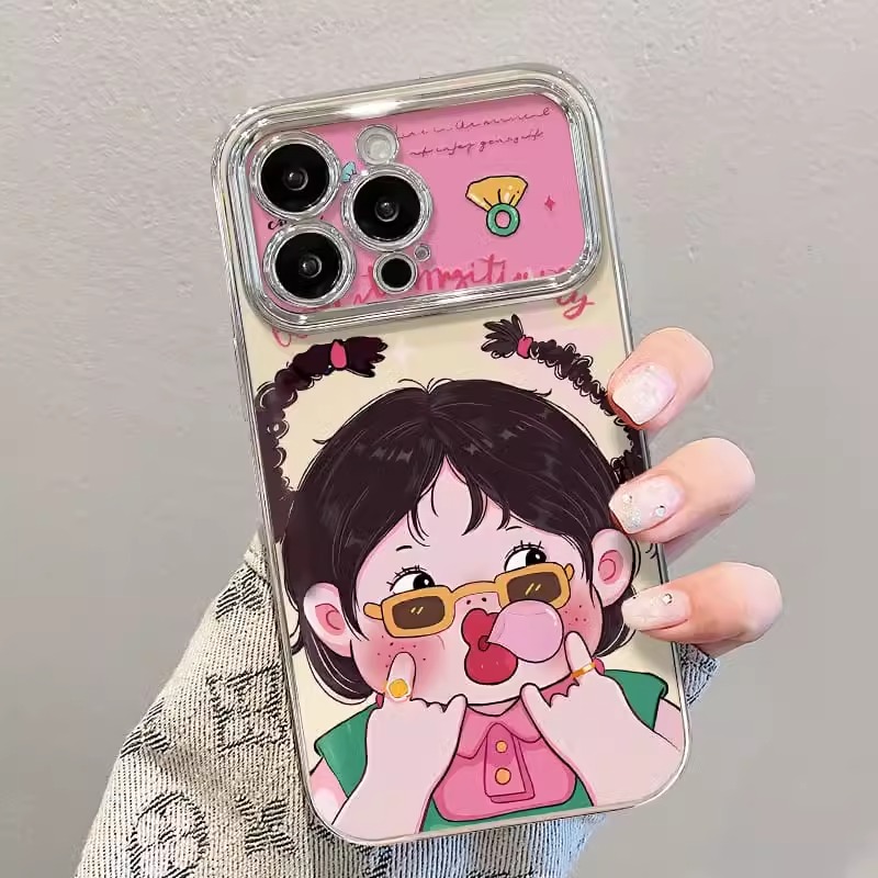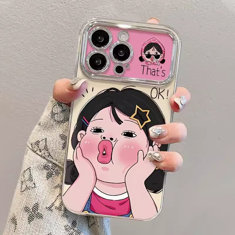 捧脸女孩适用苹果16pro手机壳华为MATE60女pura70电镀大视窗荣耀MAGIC7PRO新款OPPOFINDX8/小米15/vivox200