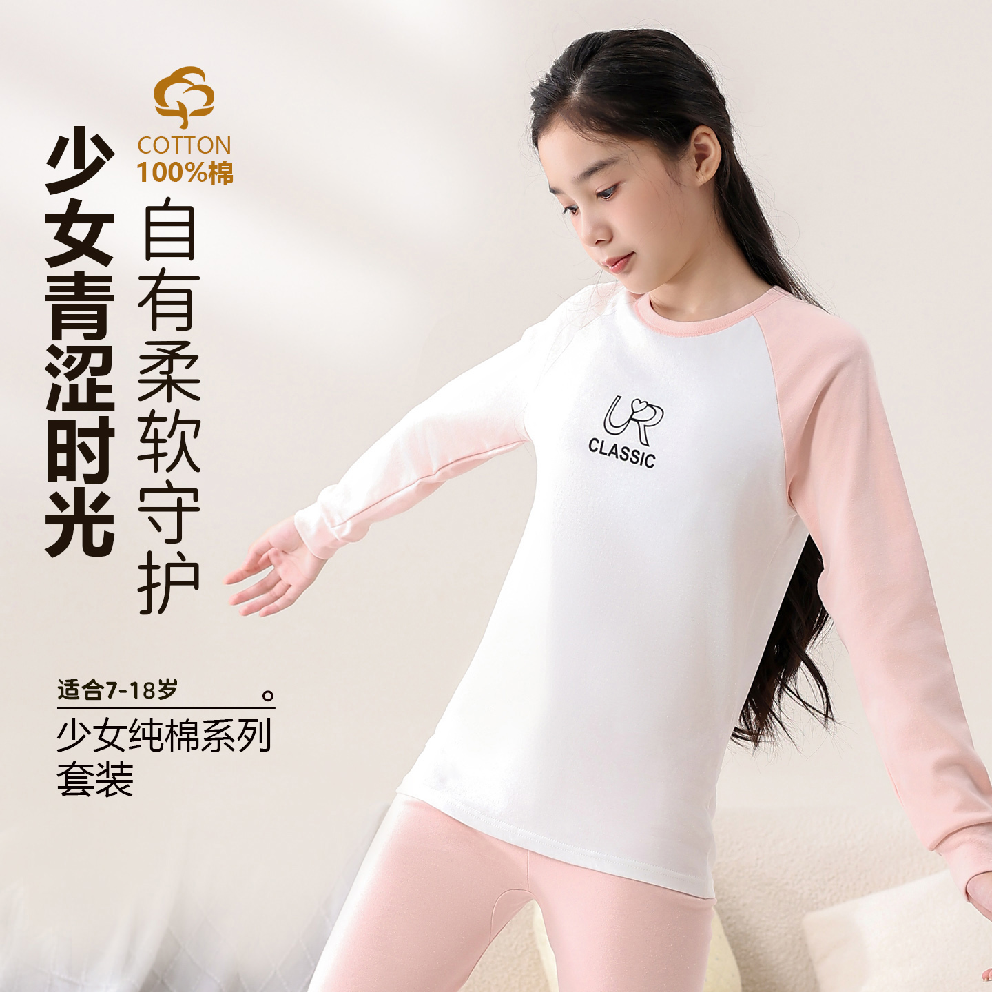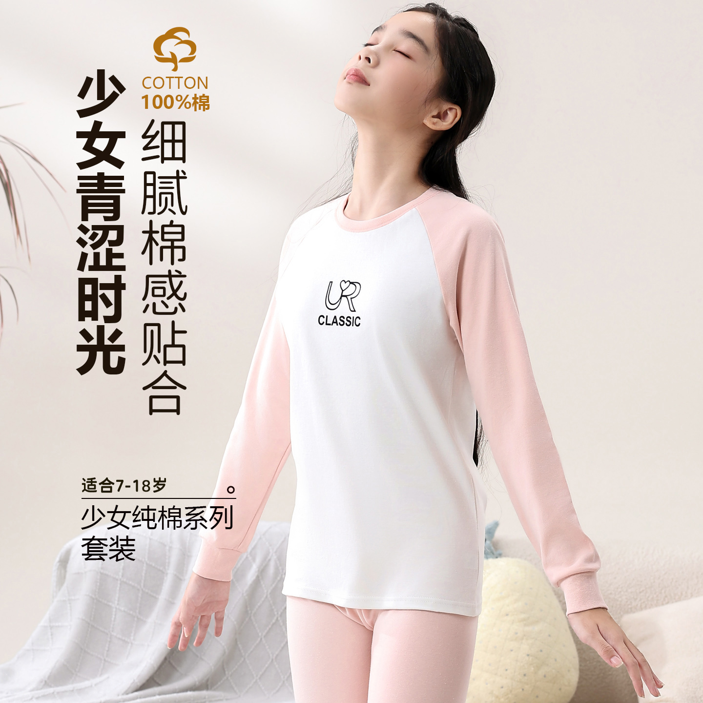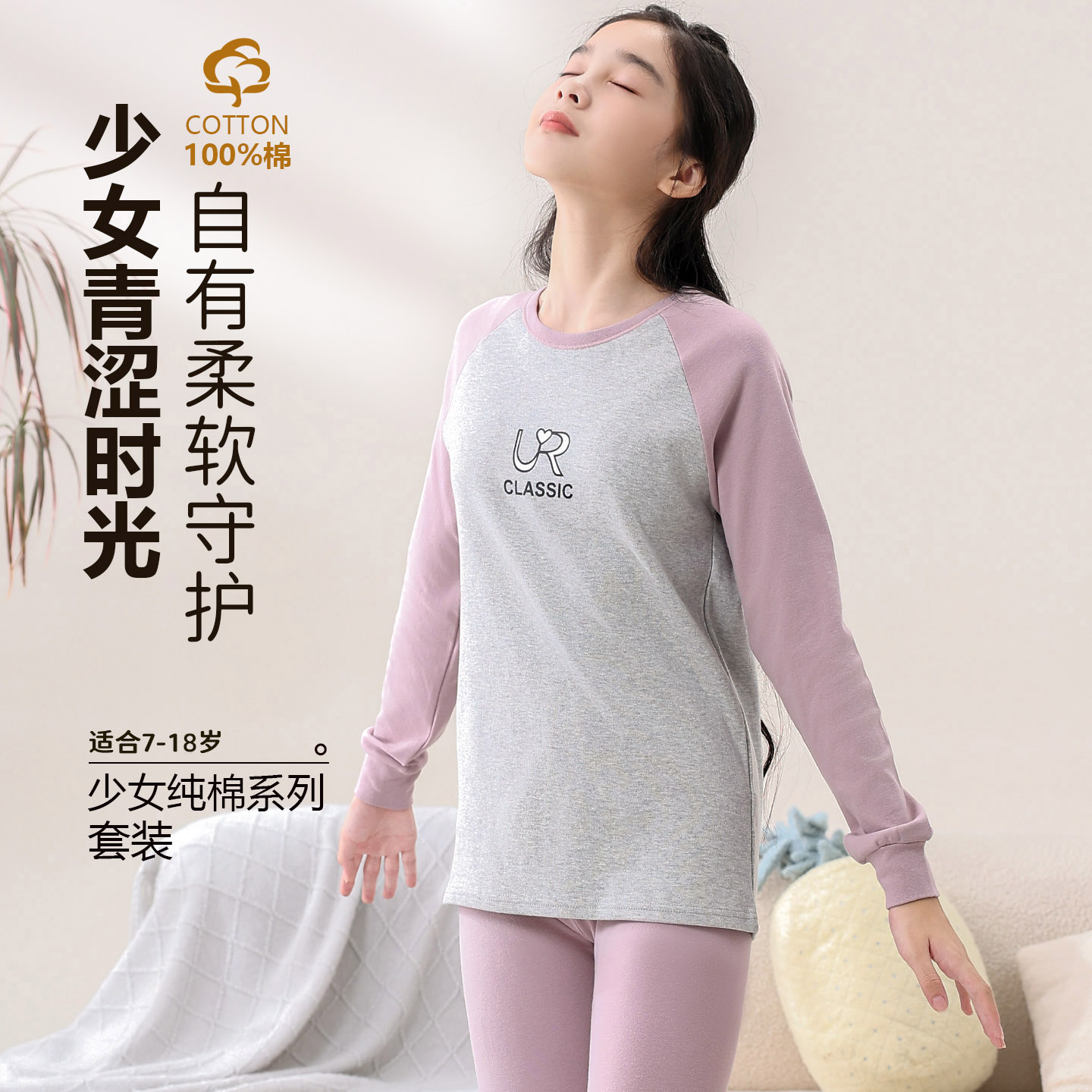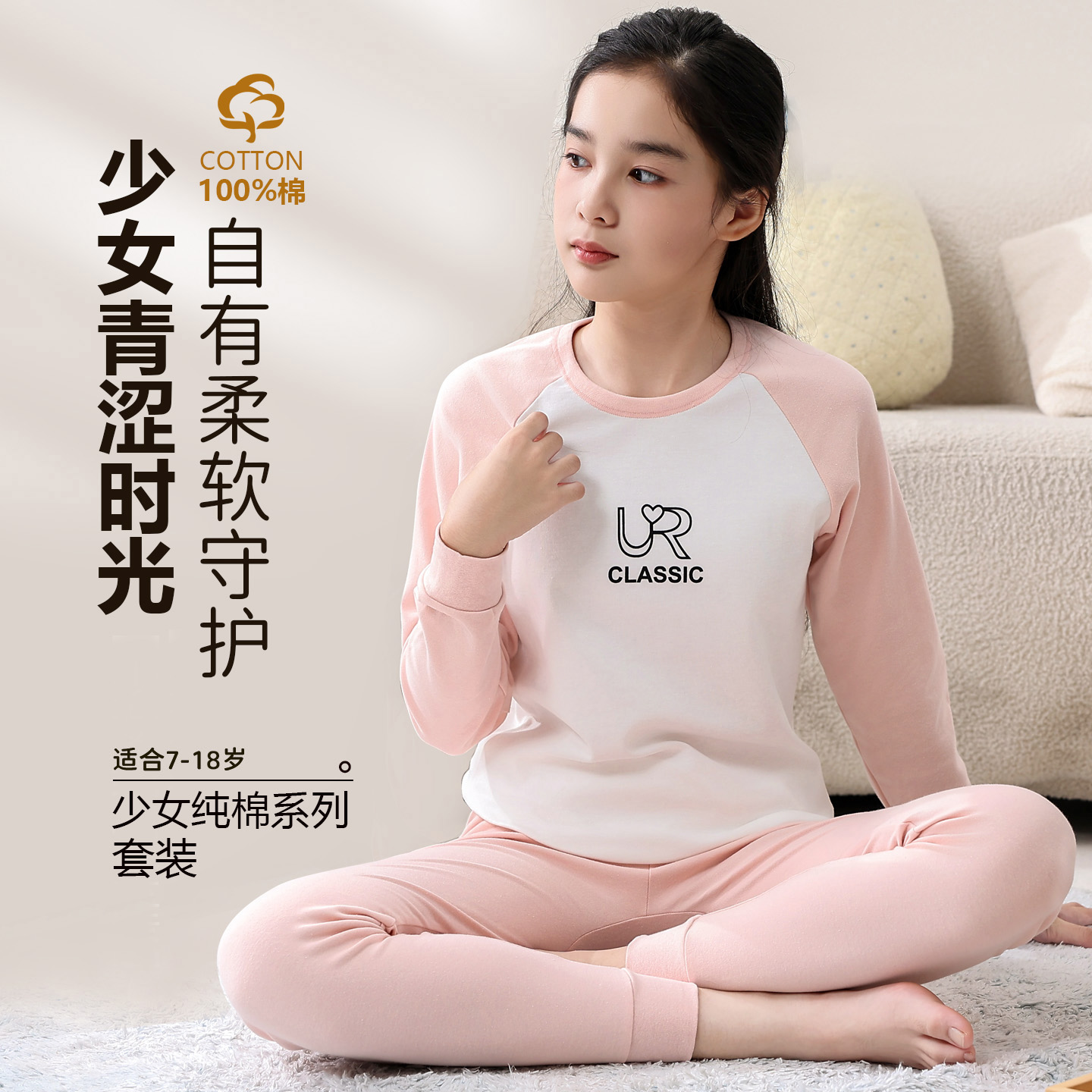 初中生少女秋衣秋裤套装女大童儿童保暖内衣高中学生纯棉毛衫睡衣