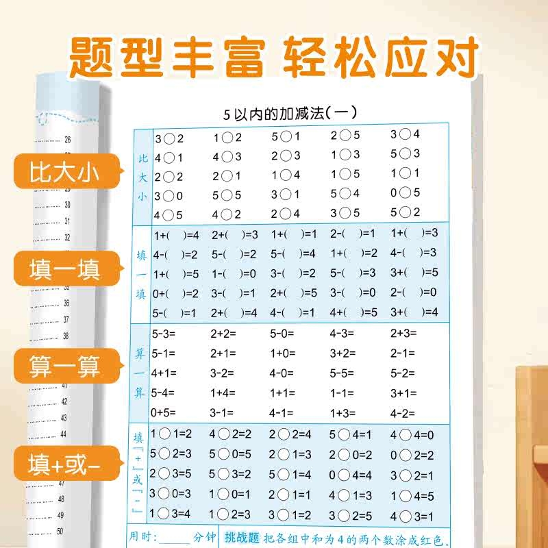 幼小衔接口算10000题幼儿园中大班数学口算天天练口算题卡10/20/100以内加减法练习册学前班升小学一年级入学准备教材全套一日一练