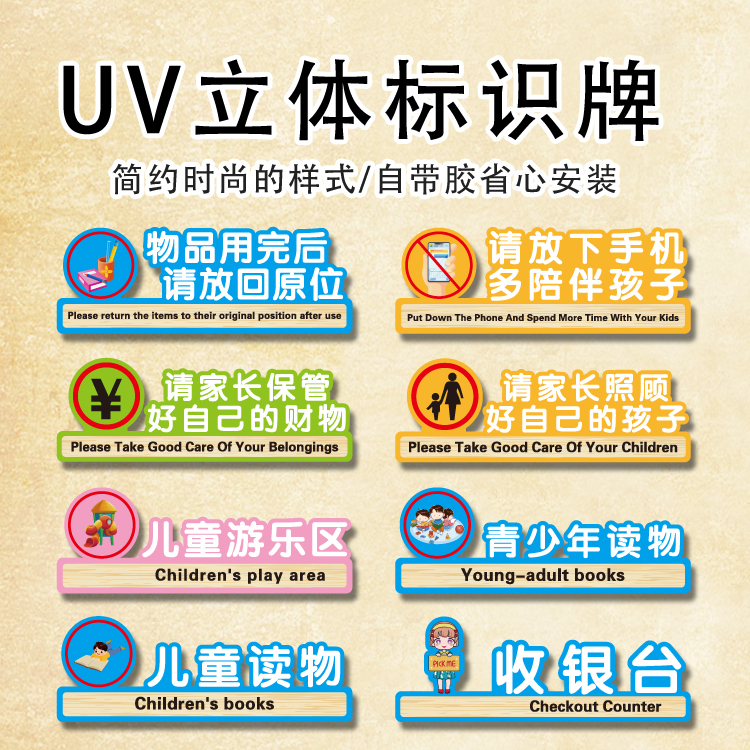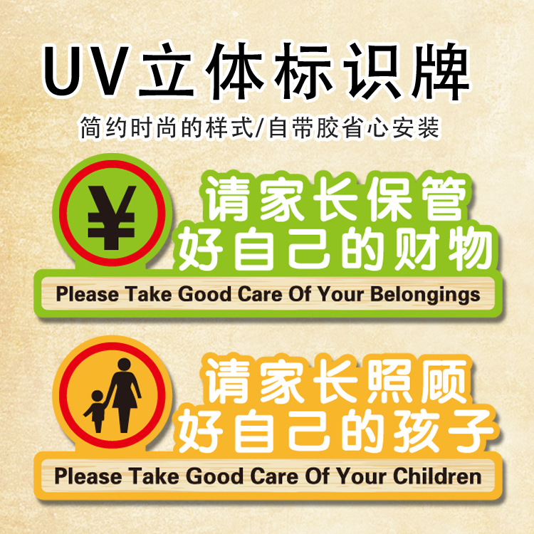 亚克力立体提示牌物品用完后请放回原位儿童游乐区标识牌请家长保管好自己的财物照顾好自己的小孩墙贴定制