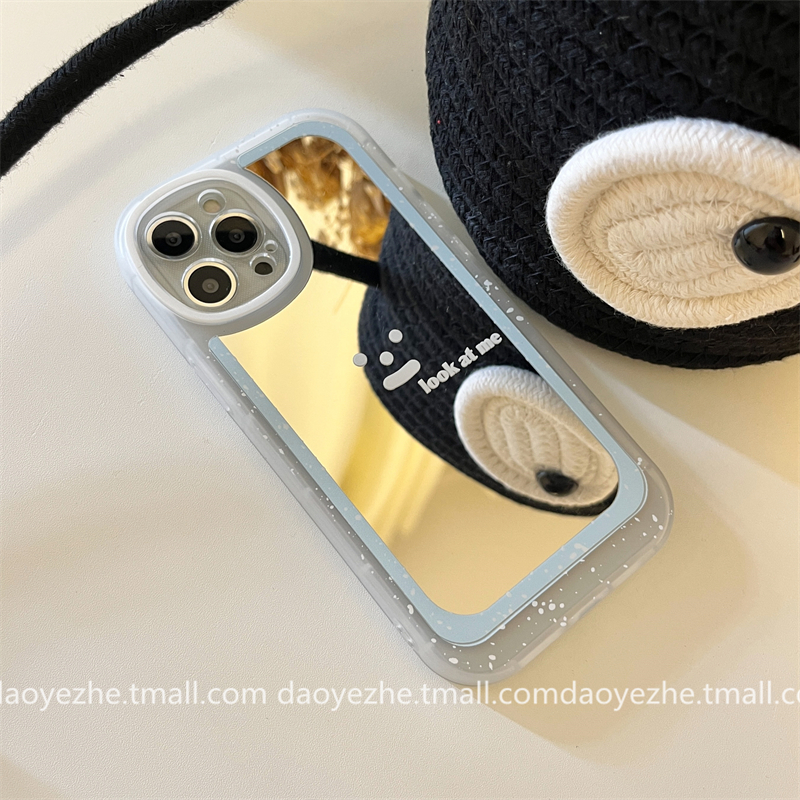 泼墨可爱笑脸镜面oppoReno14手机壳Reno13/12新款FindX8S+补妆镜Reno9/8pro+创意10镜子7/6全包11硅胶防摔女