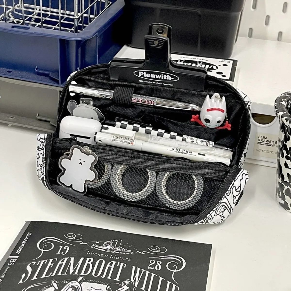 印花线条小狗折叠笔袋ins大容量文具颜值学生多层收纳袋文具盒