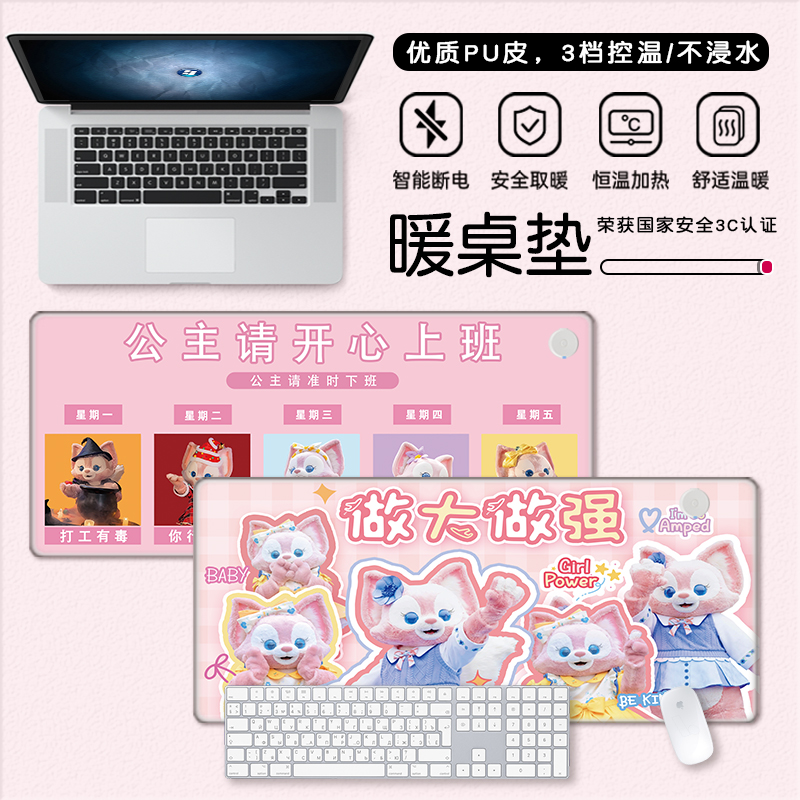 玲娜贝儿加热鼠标垫超大号冬季可爱电脑键盘冬天发热暖手办公桌垫
