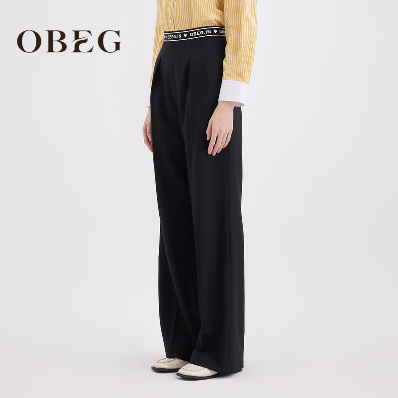 OBEG欧碧倩羊毛阔腿西装裤秋冬时尚高腰及地长裤10461040
