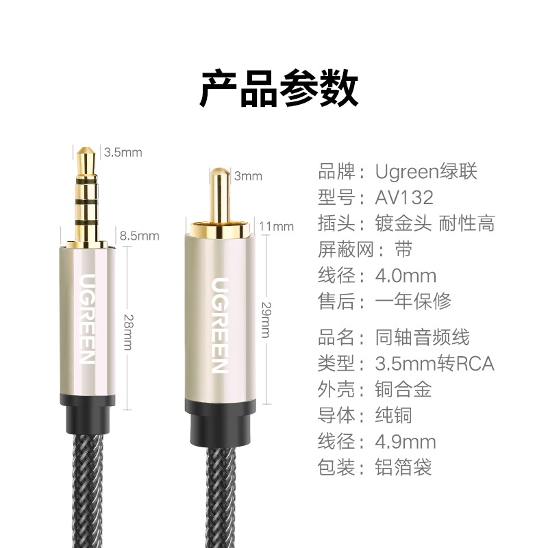 绿联同轴音频线3.5mm转单莲花头SPDIF输出适用于小米电视机音响箱