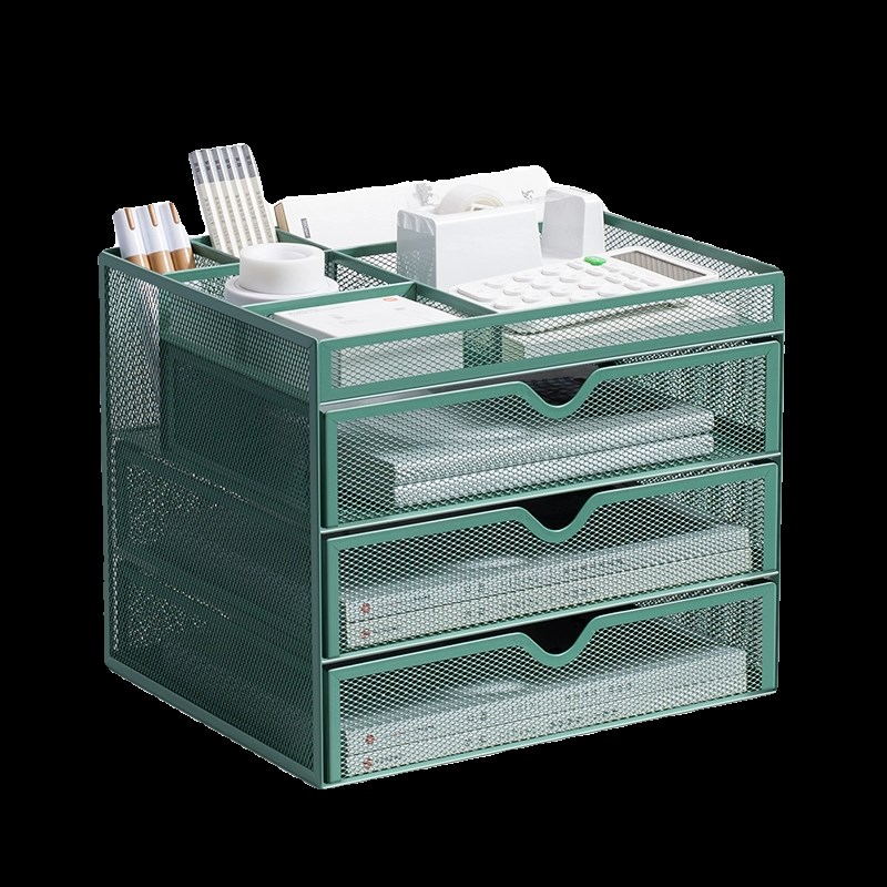 金属可抽拉文件盘文件架桌面多层办公室a4金属网纹收纳架分层文件筐立体整理资料文件档案书架加厚铁艺收纳盒