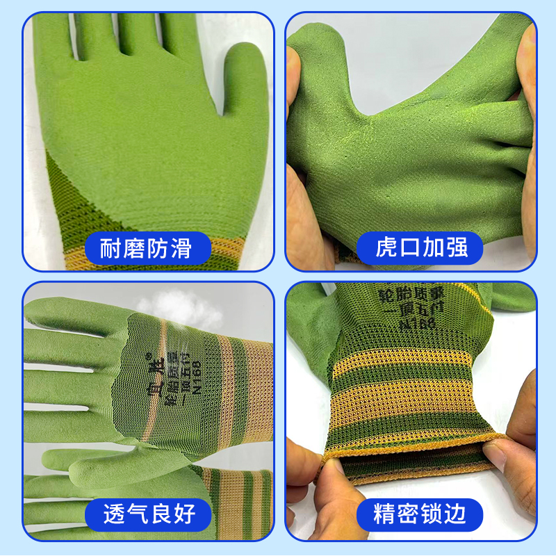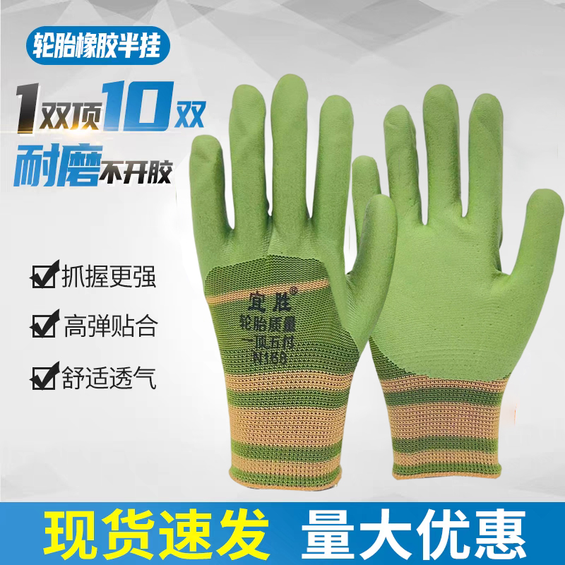 橡胶手套工作劳保耐磨防滑轮胎发泡胶皮工地干活透气浸胶乳胶防护