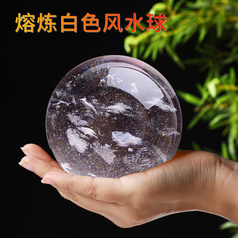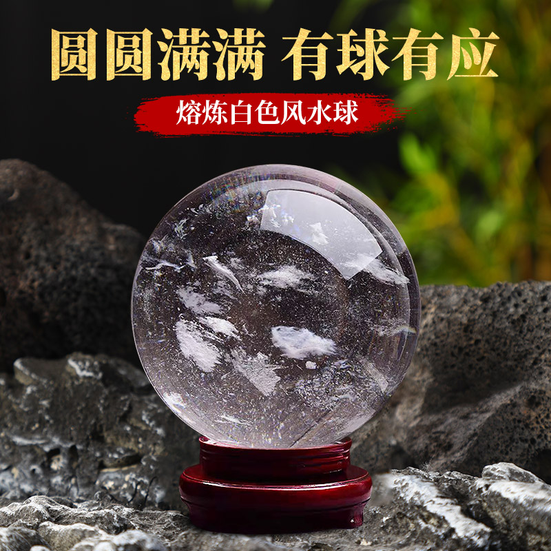 天然白色水晶球摆件奇石原矿石熔炼手工打磨开业乔迁办公桌面摆件