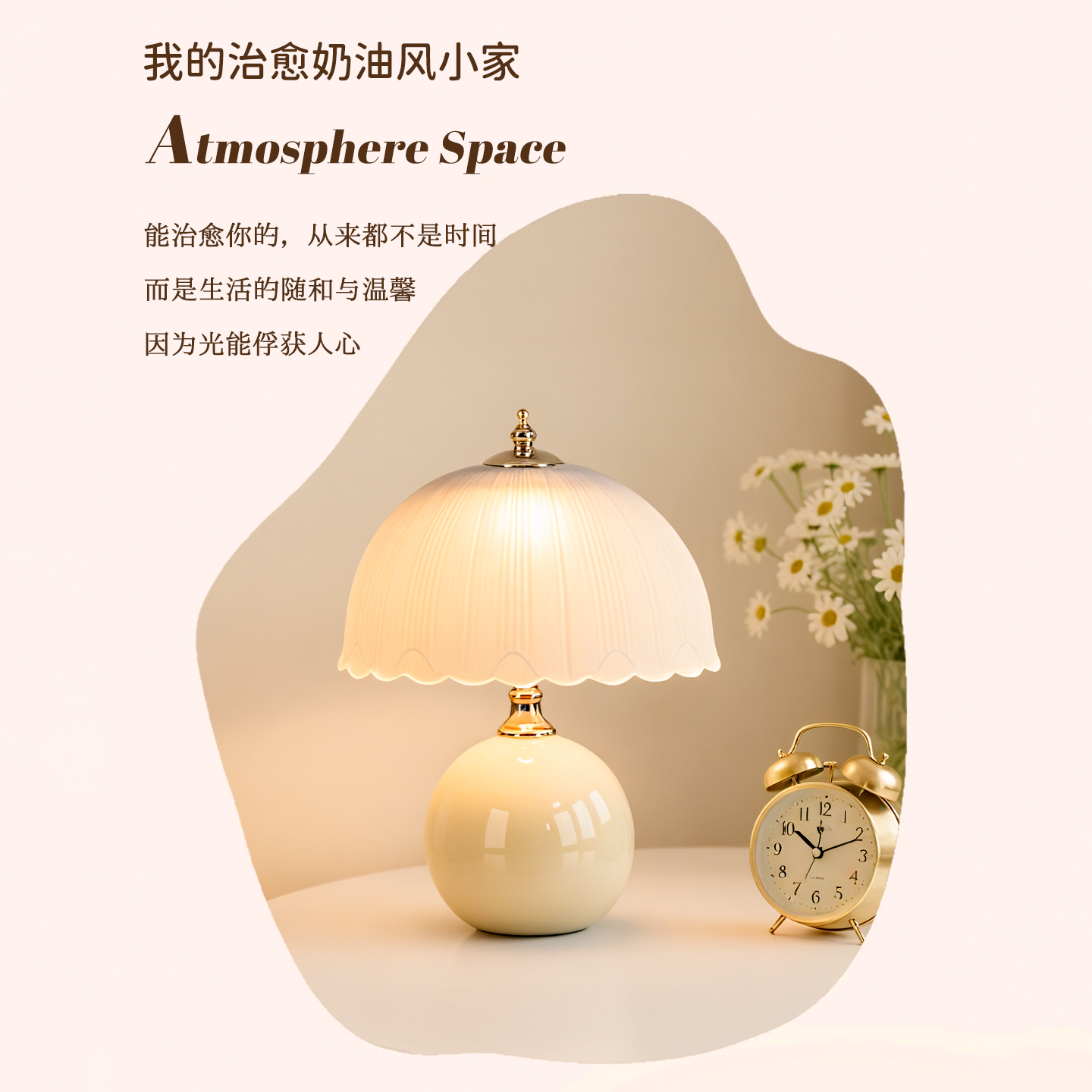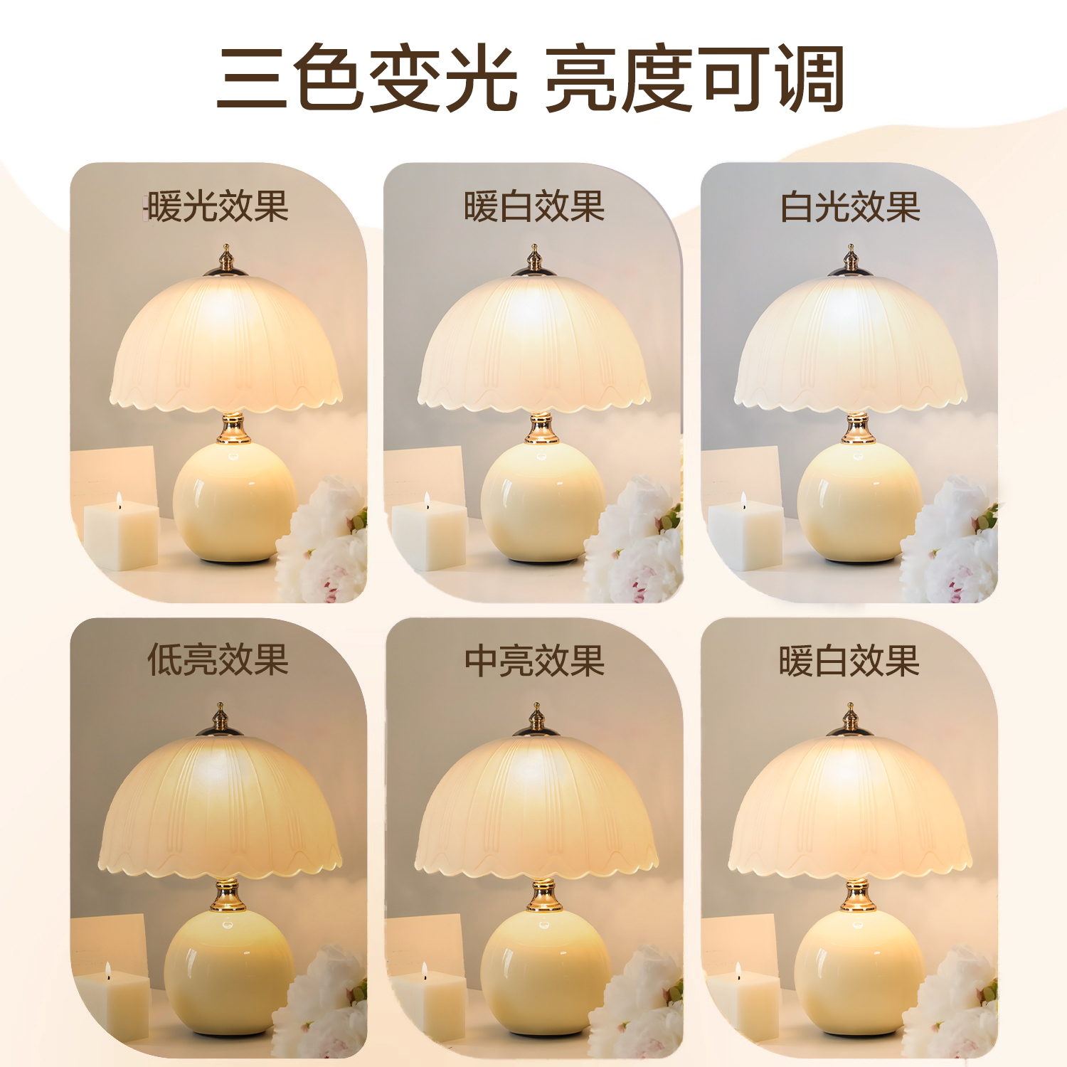 奶油风复古台灯卧室床头灯氛围高级感2025新款轻奢结婚长明小夜灯