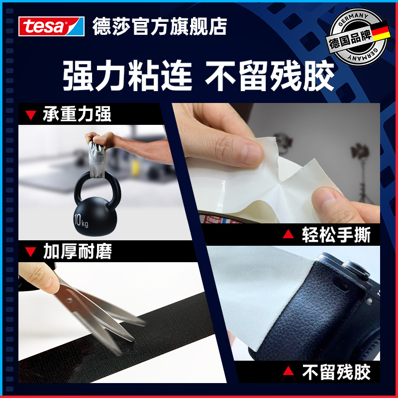 tesa德莎加厚布基大力胶带影视胶布摄影耐磨修补帐篷无残痕银灰色防水密封汽车防台风高强度户外加固遮蔽4687
