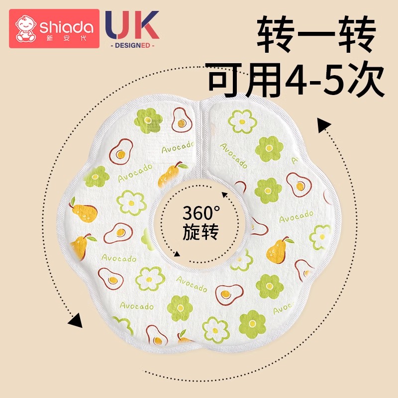 嫚熙婴儿口水巾纯棉宝宝花瓣防水围嘴夏季薄款可旋转新生口水围兜