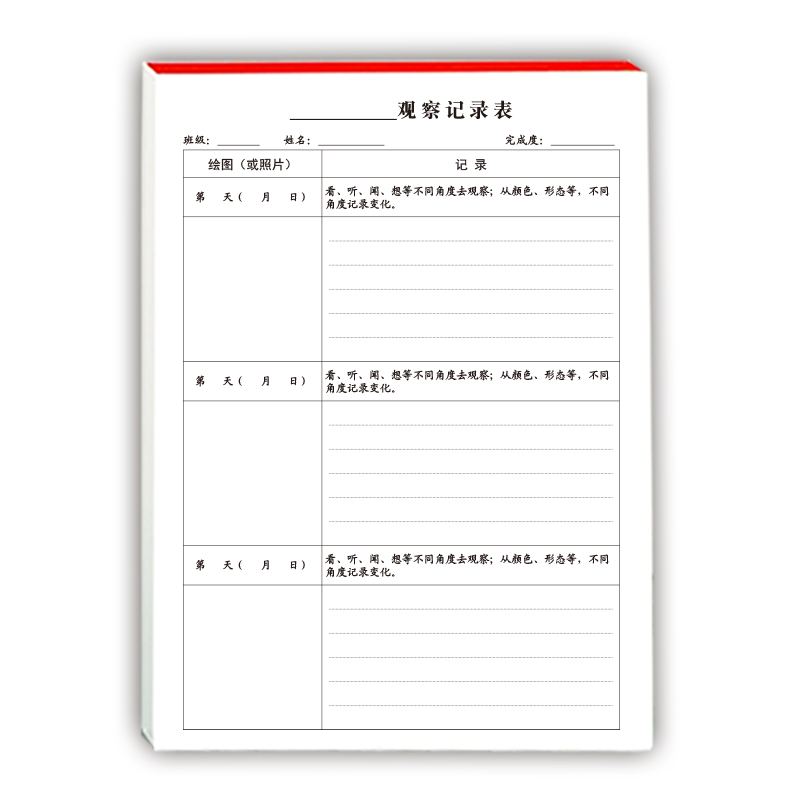 观察记录表小学生豆芽土豆红薯韭菜西红柿油菜小青菜白菜等蔬菜植物培养观察表