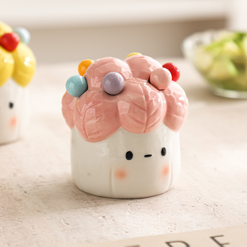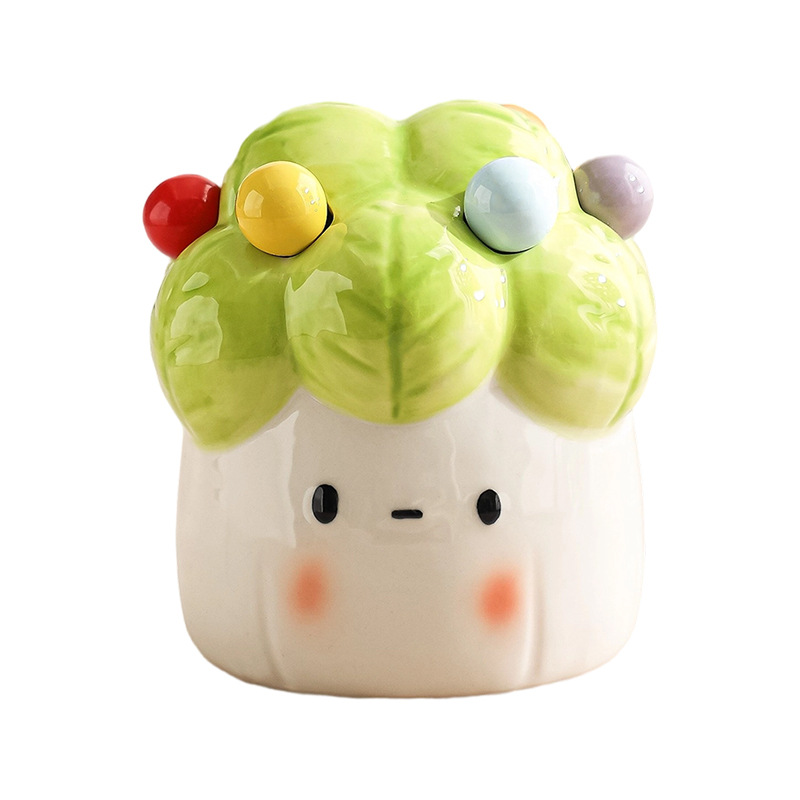 白菜水果叉子套装家用甜品小叉子收纳罐不锈钢水果签果插高级感