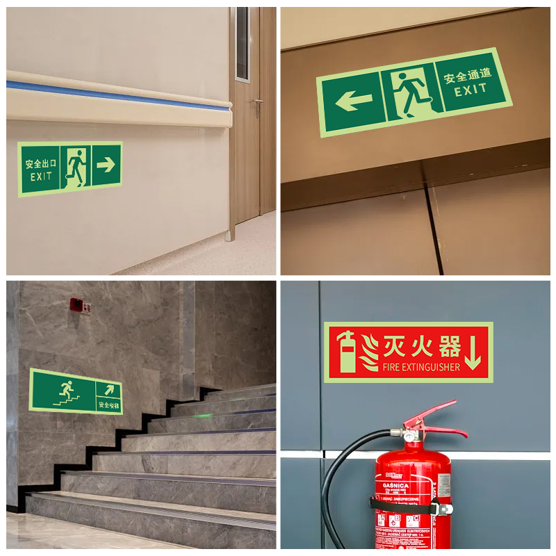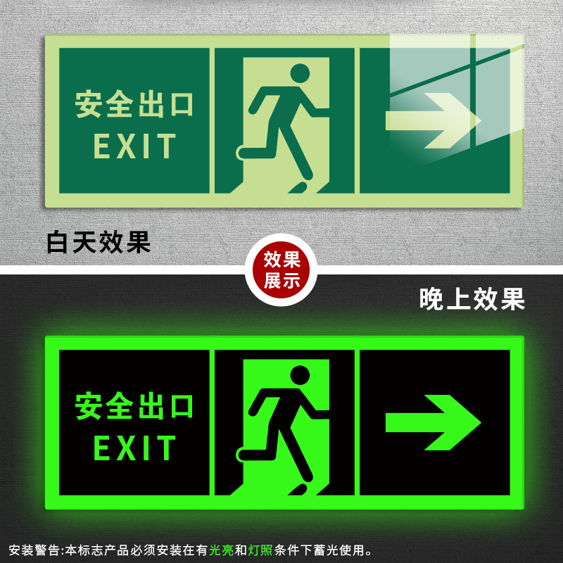 安全出口指示牌标示牌免接电自发光夜光安全通道楼梯紧急出口通道楼梯自蓄光疏散指示荧光地贴警示牌