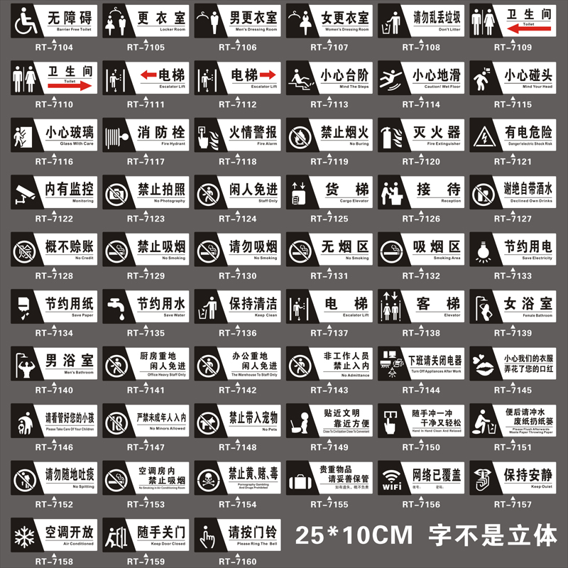 亚克力内有监控标牌男女洗手间便后请冲水指示牌网络wifi门贴禁止吸烟温馨提示牌酒店小心碰头地滑门牌定制