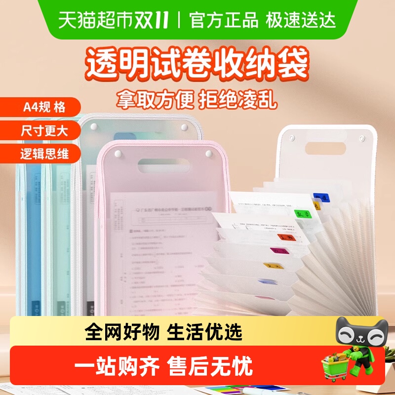 时光学试卷夹收纳袋小学生科目分类文件袋a4多层文件学生档案袋