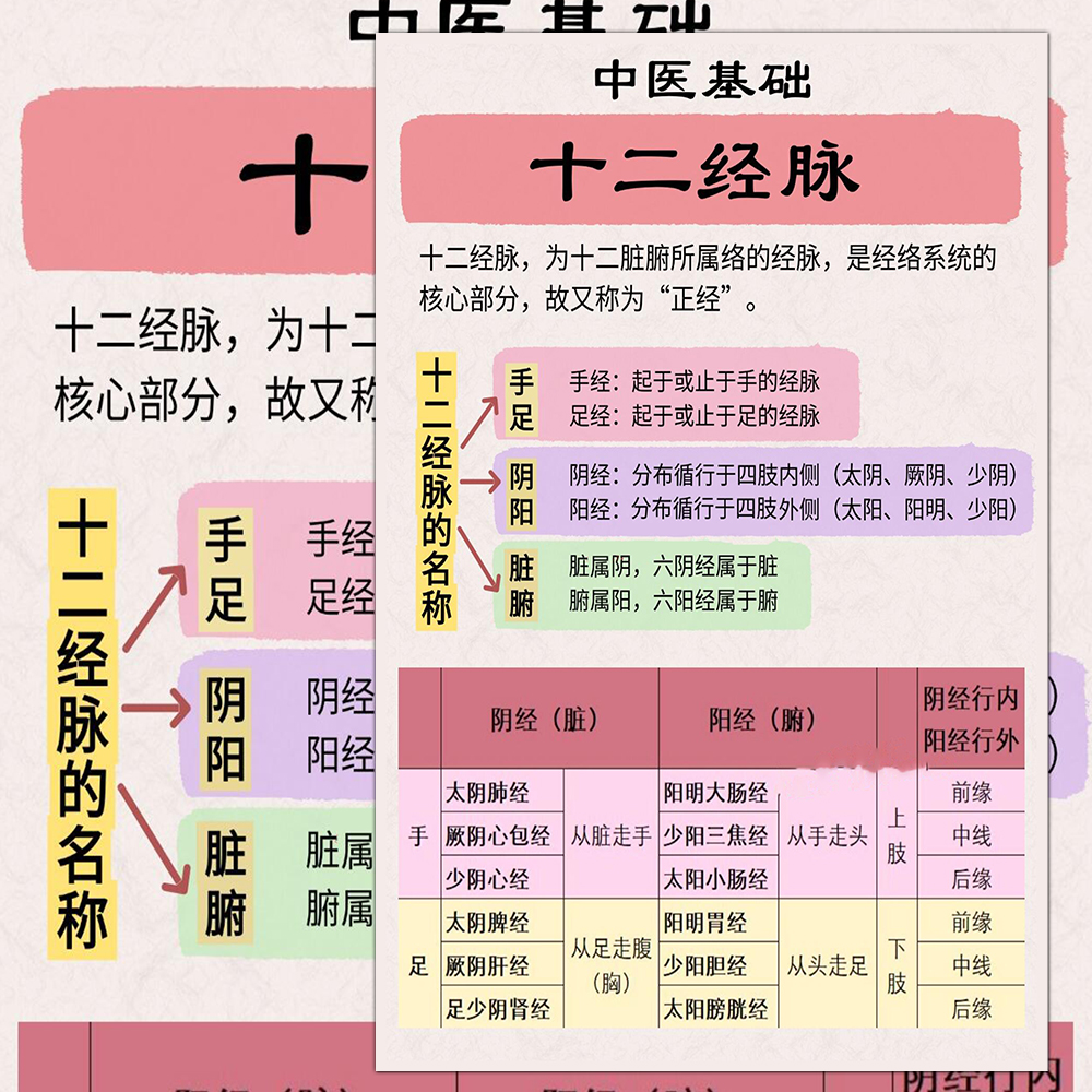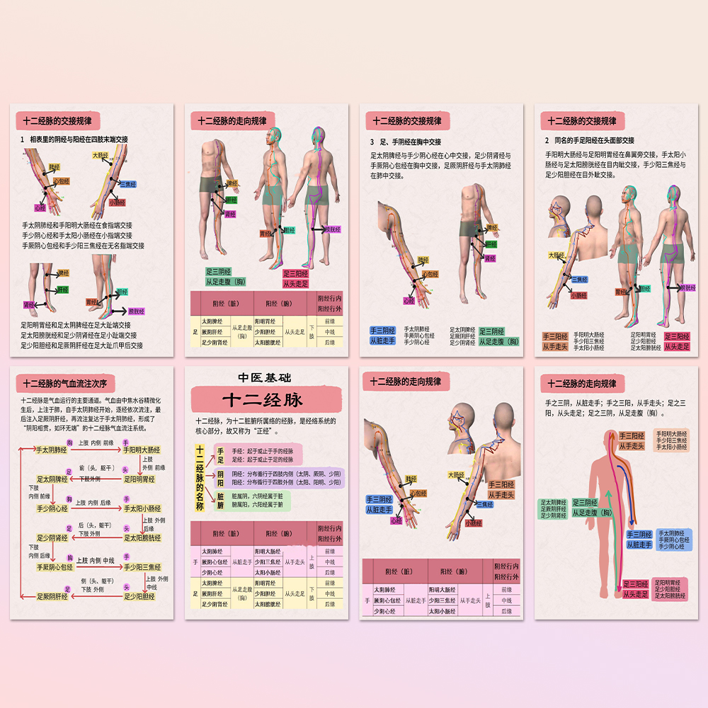 中医基础十二经脉循行走向交接定向规律医学生理论知识点高清贴画