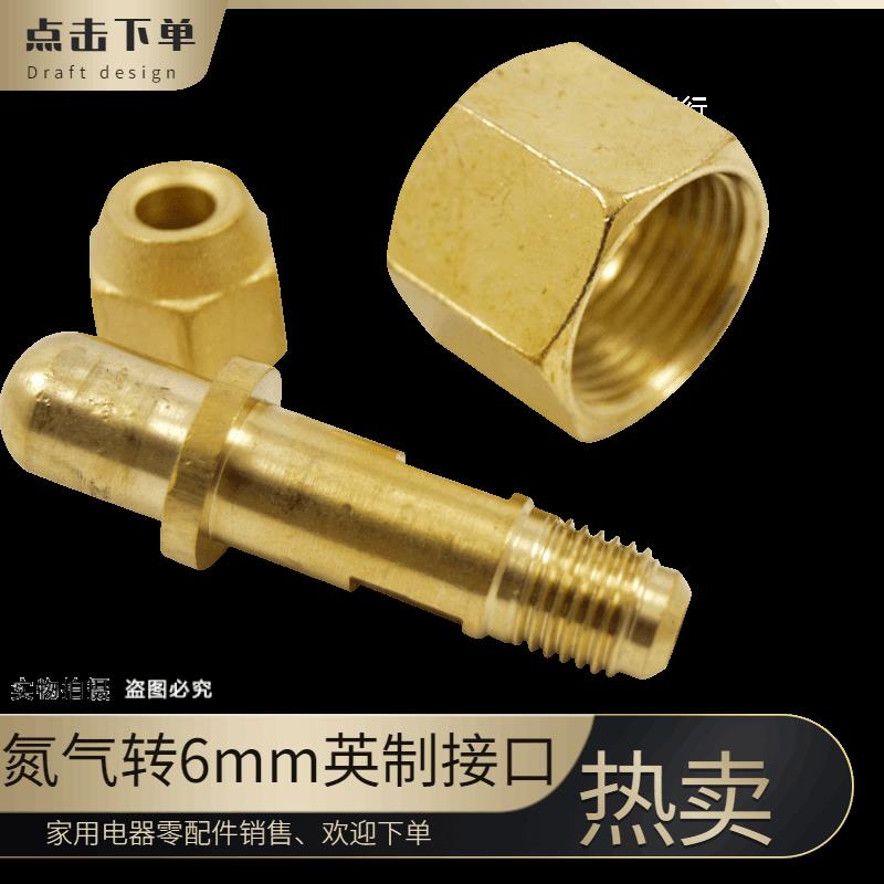 中央空调氮气打压保压转接头氧气瓶英制冷媒管1/4铜螺帽钠子接头