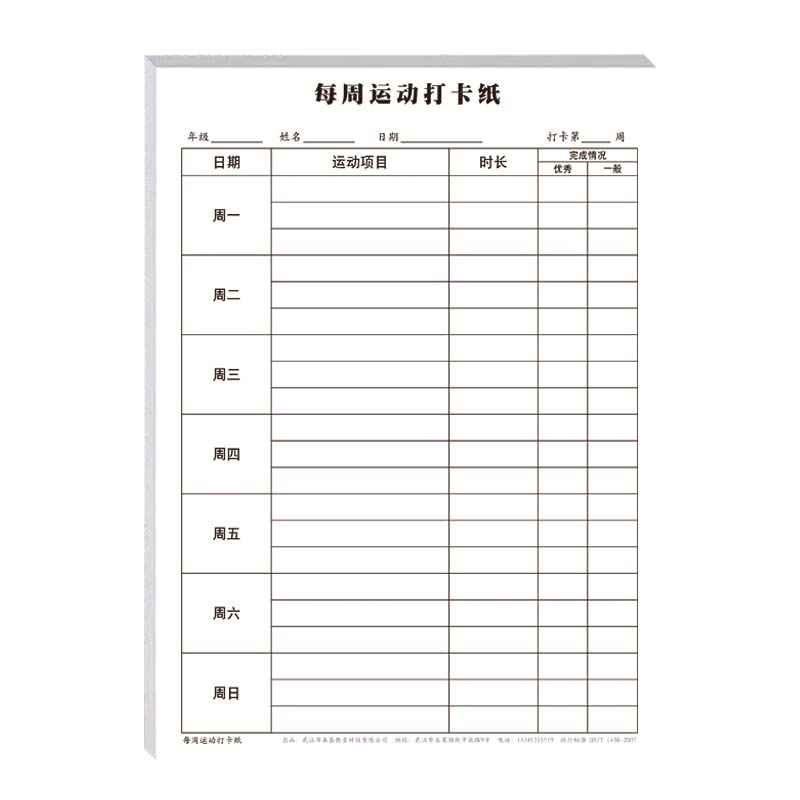 每周运动打卡纸小学初中记录跑步跳绳羽毛球等项目运动时长及情况