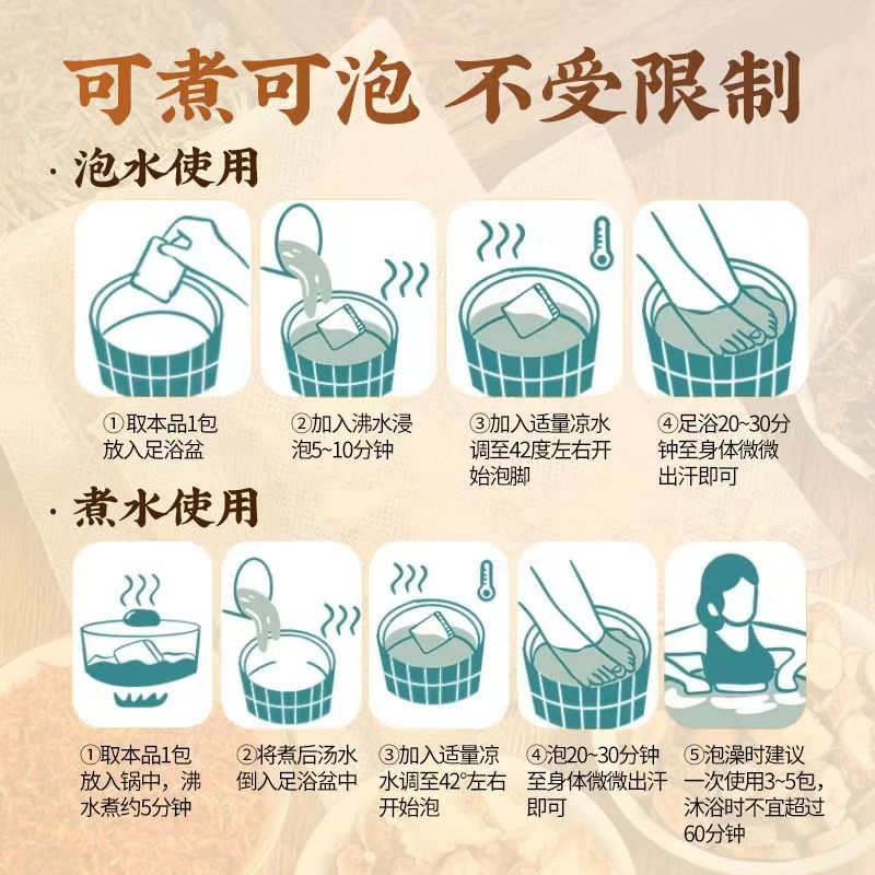 花椒艾叶生姜祛湿泡脚包去湿气排毒助睡眠驱寒专用艾草足浴泡脚包