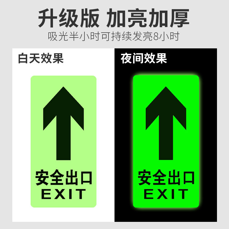 安全出口指示牌夜光地贴标识小心台阶地滑消防安全通道疏散紧急出口荧光箭头指示提示牌自发光墙贴警示标志牌