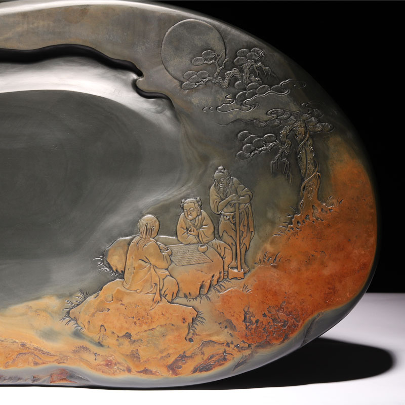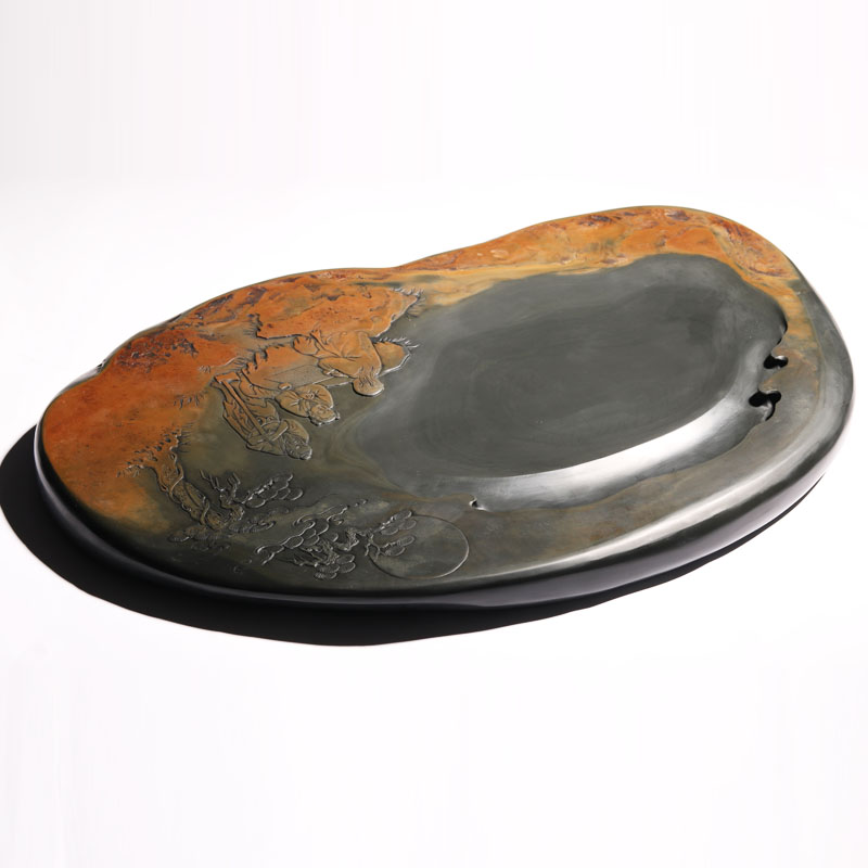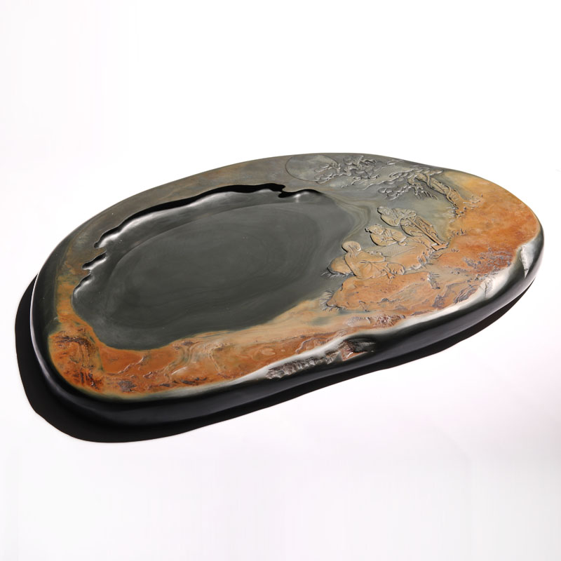 非遗安徽歙砚名师手工巧雕《乐在其中》济源坑金晕天然原石高档文房四宝研磨书法专用孤品收藏精品老坑大砚台