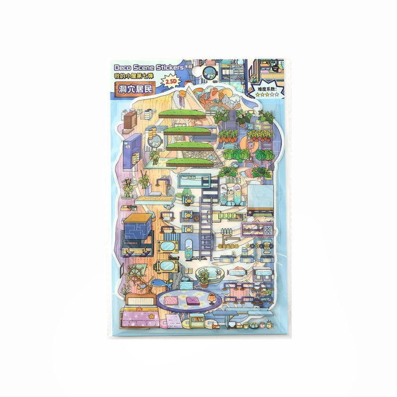 送镊子)造景贴纸微缩场景合集本贴纸本立体换装贴纸女孩儿童diy防水贴画亲子小游戏解压小屋玩具装饰小图案