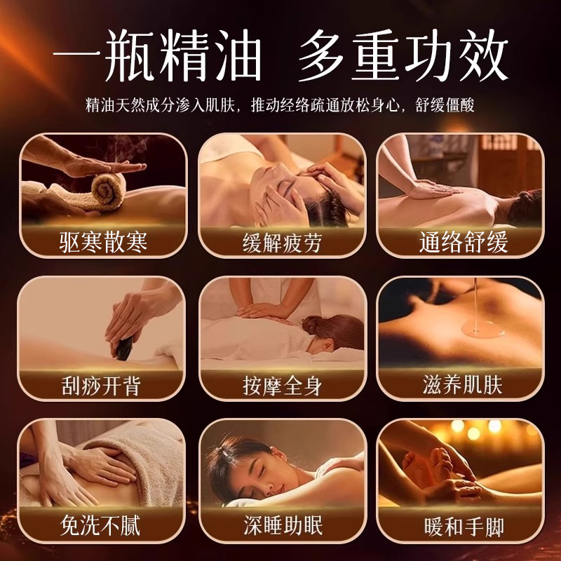 生姜艾草精油发热开背按摩精油刮痧推背全身体推拿油舒通经络免洗
