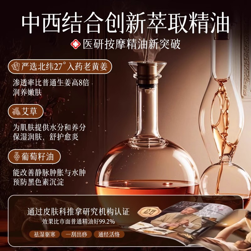 生姜艾草按摩精油全身通经络发热腿肚子紧致减排湿油毒柔脂腹刮痧
