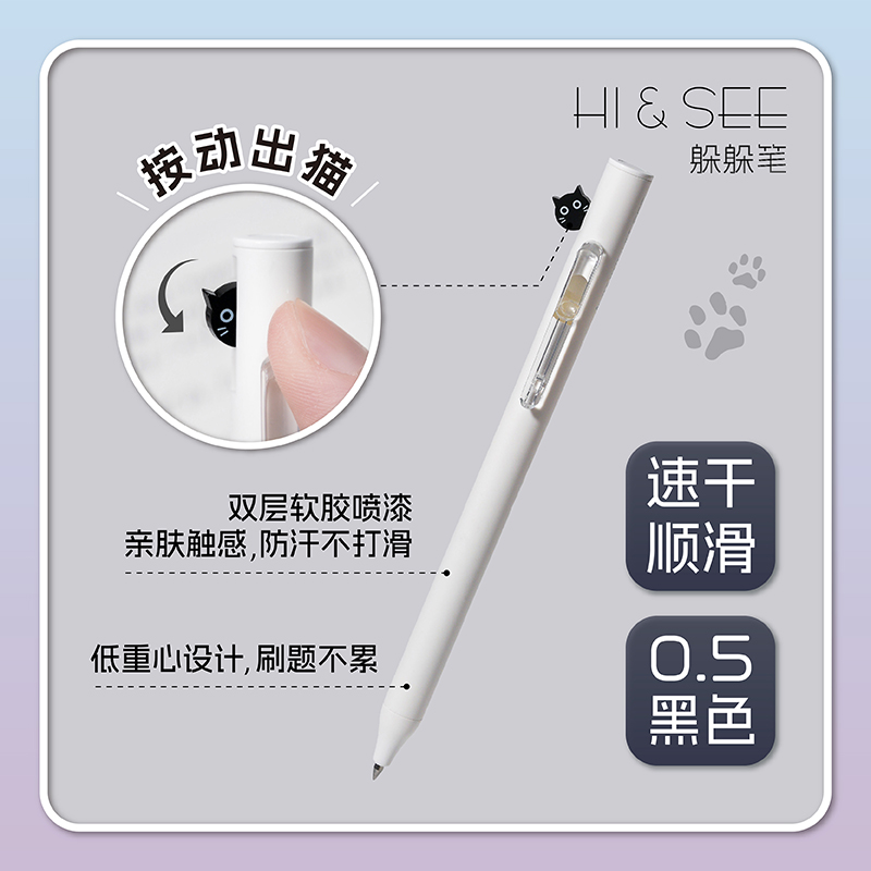 MENIU米扭中性笔按动式躲躲笔双珠子弹头0.5mm黑笔猫猫笔初中高中学生考试刷题笔学习搭子套装速干顺滑