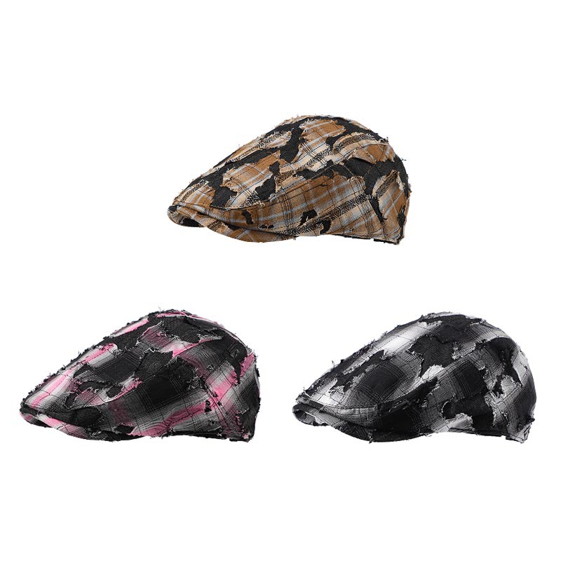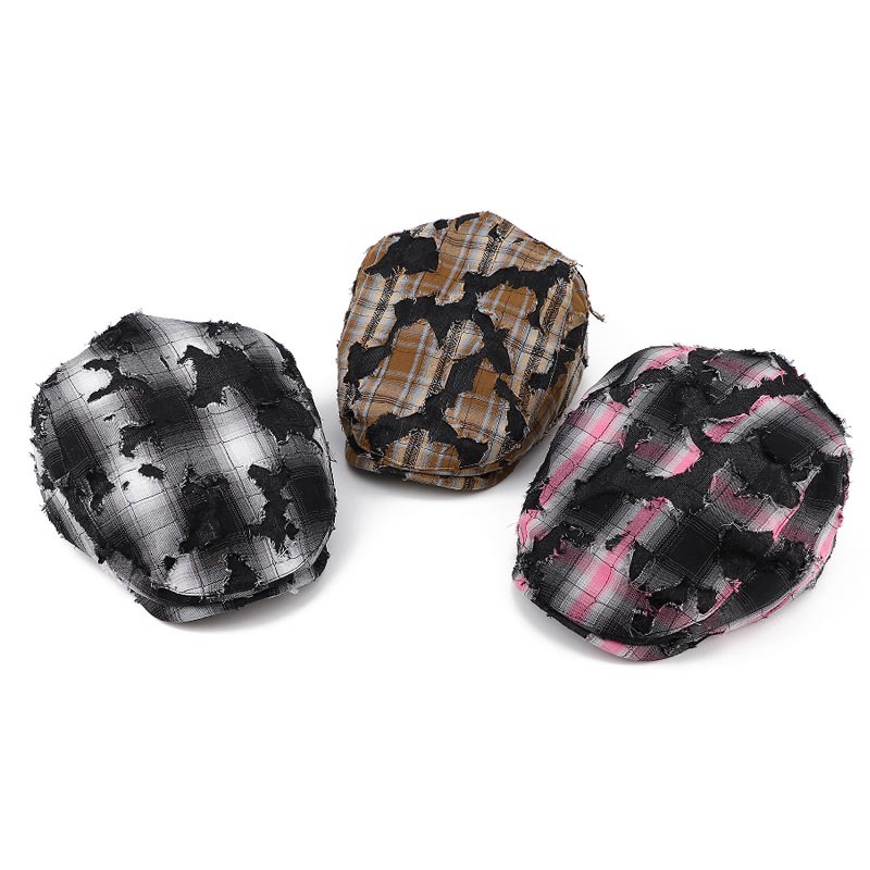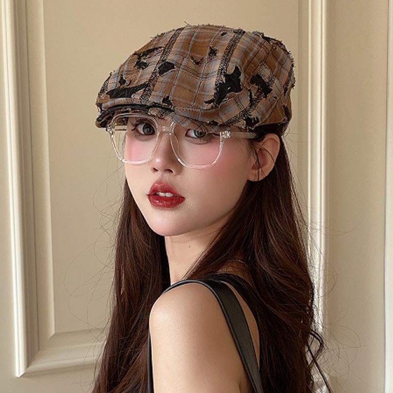 全新升级款洞前进帽女时尚格纹贝雷帽反戴百搭显脸小鸭舌画家帽子