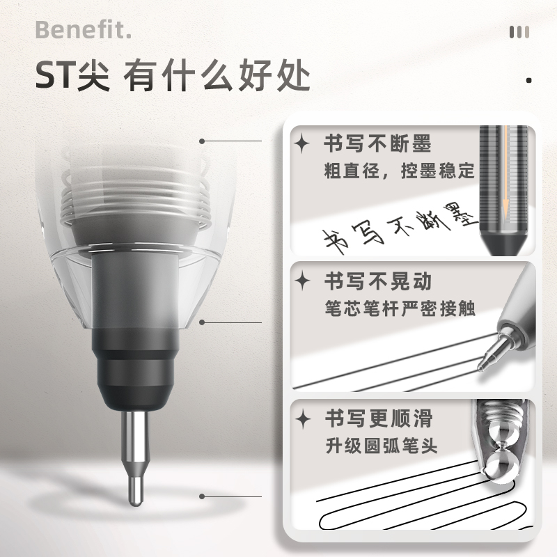 ST刷题笔高颜值按动中性笔圆珠笔黑色水笔小学生专用考试0.5速干碳素笔水性黑笔按压式做笔记签字笔非按斤卖