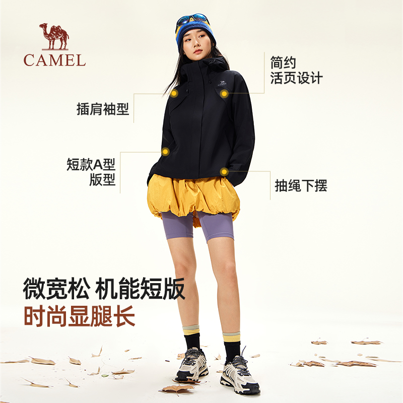 骆驼女装三防冲锋衣短款外套小个子新款夹克女户外防风防水登山服