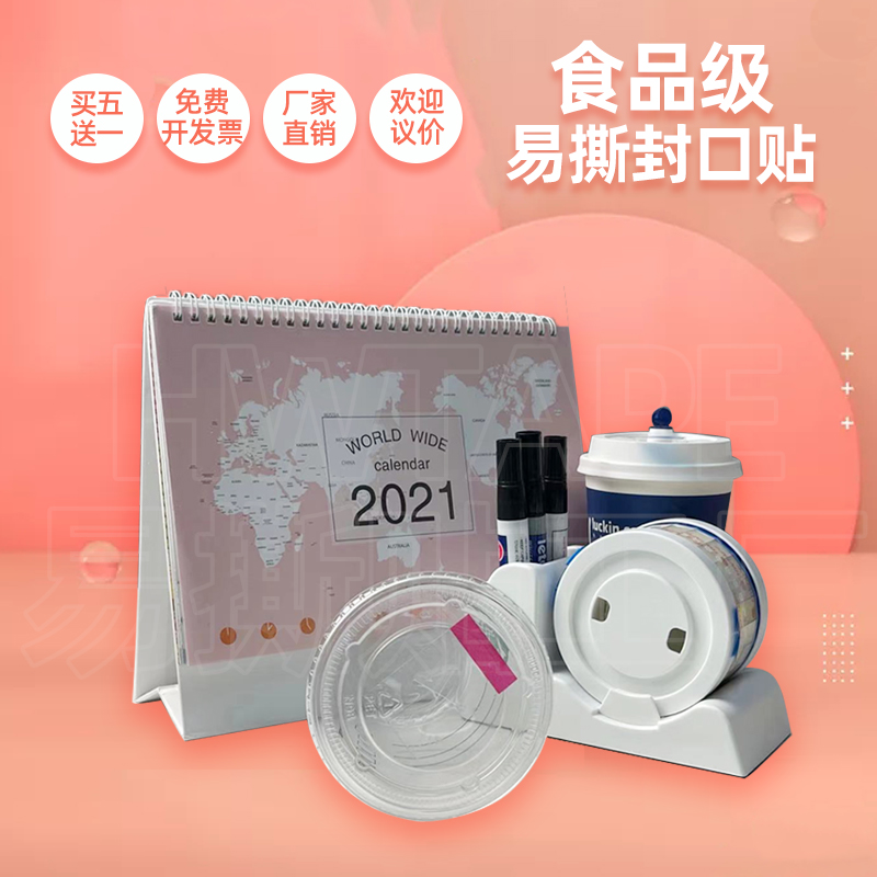 HWTAPE易撕贴咖啡杯定制封口胶带抖音推荐杯盖奶茶LOGO透明胶带