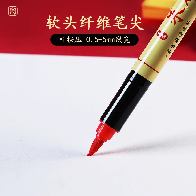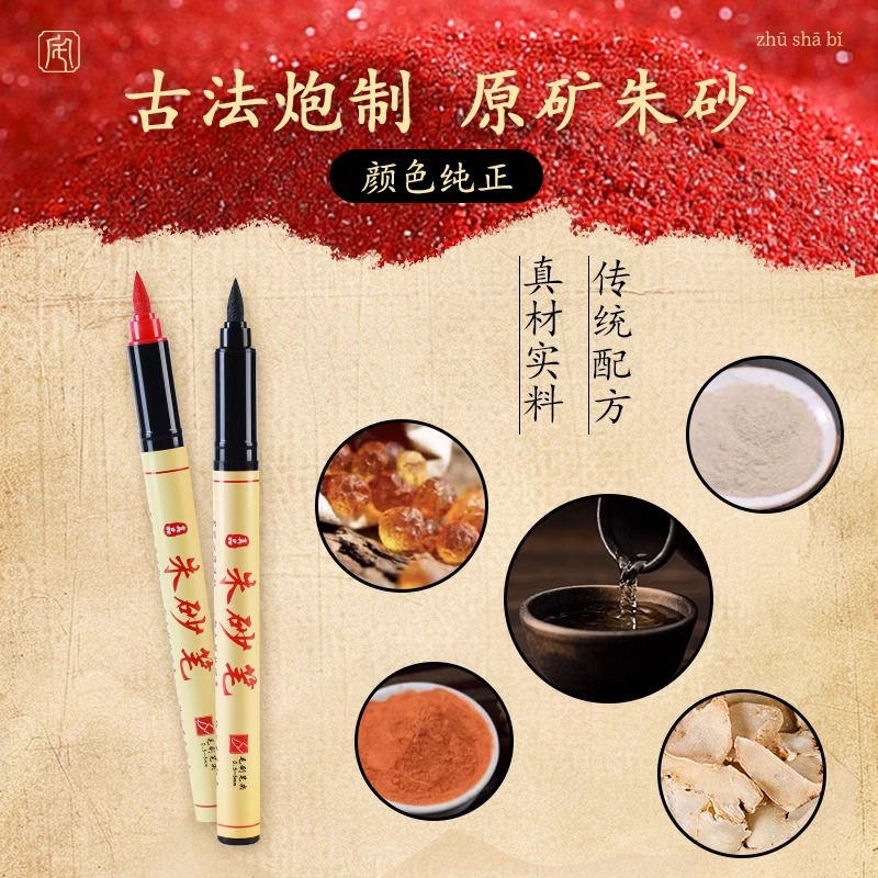 正版朱砂笔道家福画写福专用红色硬头专业款抄经书开礼喜字水溶性朱墨黄付黄苻绘画笔免蘸纯朱砂正宗墨直液式