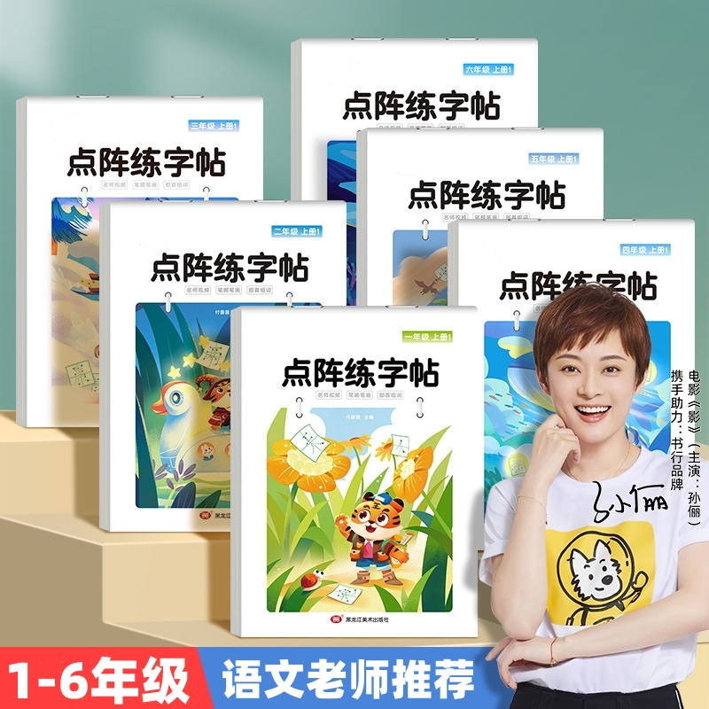 六年级上下册同步点阵练字帖部编版语文写字表生字笔画笔顺偏旁拼音练习描红本1-6小学生控笔训练练字本儿童钢笔字帖6年级田字格