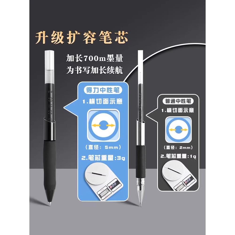 得力刷题笔速干按动笔中性笔臻顺滑0.5mm水性笔圆珠笔学生考试专用黑色大容量子弹头高颜值碳素签字笔按压式