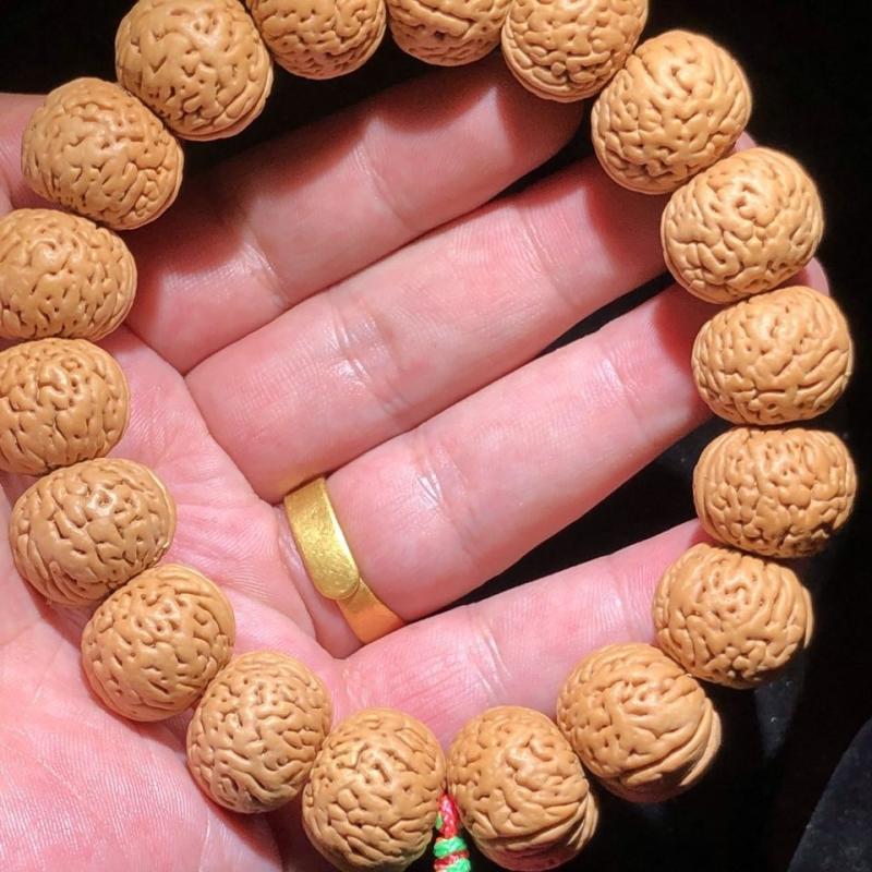 脑纹山桃核手串链男桃胡木小原籽文玩佛珠天然姜黄皮矮桩把件单圈