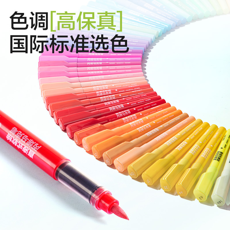 得力果冻包直液式丙烯马克笔布袋软头可叠色强覆盖力不易透纸小学生绘画DIY多种规格可选水彩笔