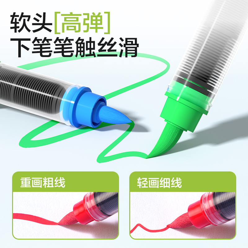 软硬双头丙烯马克笔不透色可叠色软头水彩笔初中生小学生美术专用儿童无毒可水洗画画笔48色笔芯彩色笔36细头