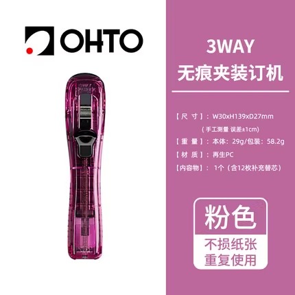 日本进口OHTO乐多推夹器不锈钢无痕订书夹票据夹试卷收纳文件整理