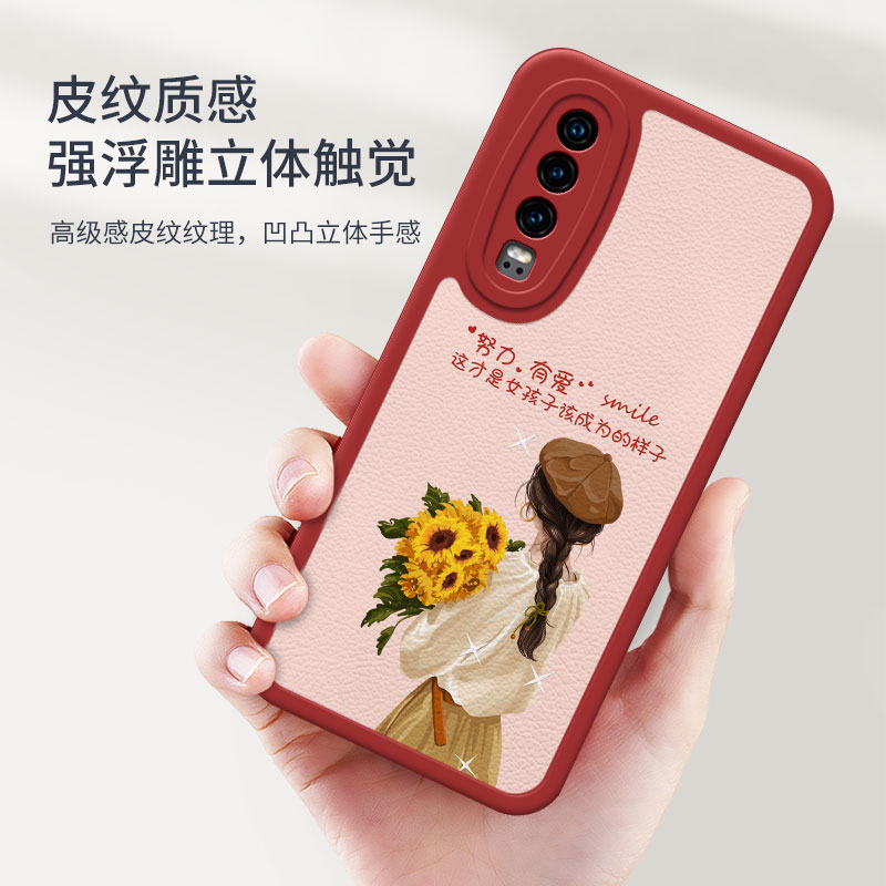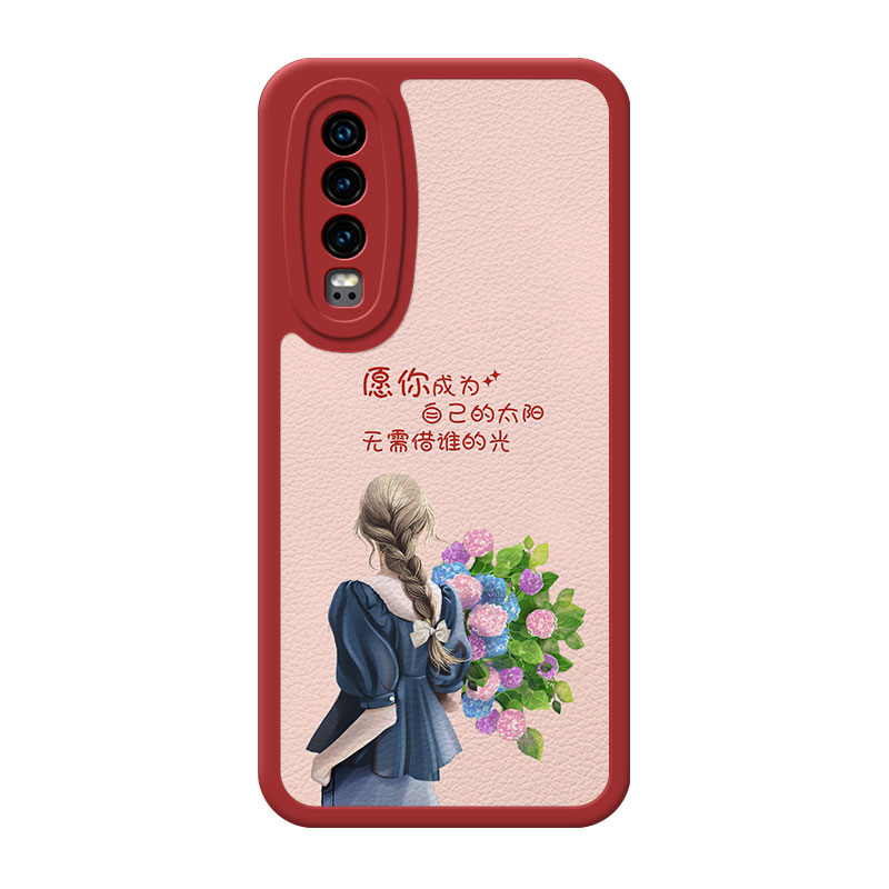 捧花女孩暗红适用于华为p30手机壳p60pro文艺p50小清新p40pro高级感mate60女款nova11创意20小羊皮防摔软壳