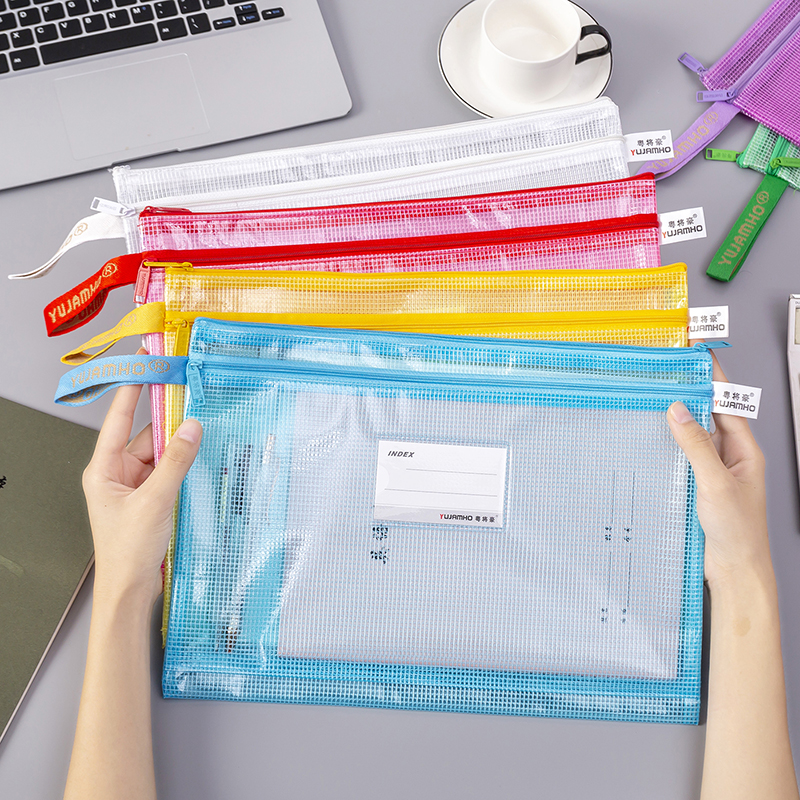 网格文件袋加厚透明网格拉链袋A4试卷收纳袋学生用考试文具袋防水笔袋办公用品批发公文档案袋资料袋包邮