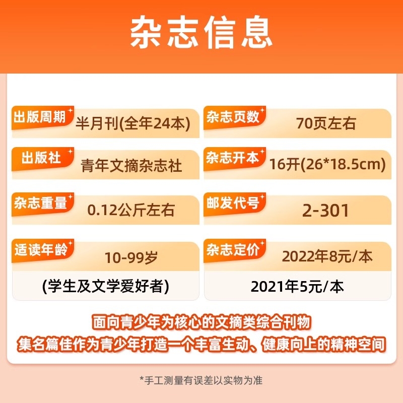 青年文摘杂志2025年现货2024年/2023年1-24期清仓全年/半年订阅官方旗舰店彩版合订本初高中学生意林读者中考高考作文素材过刊