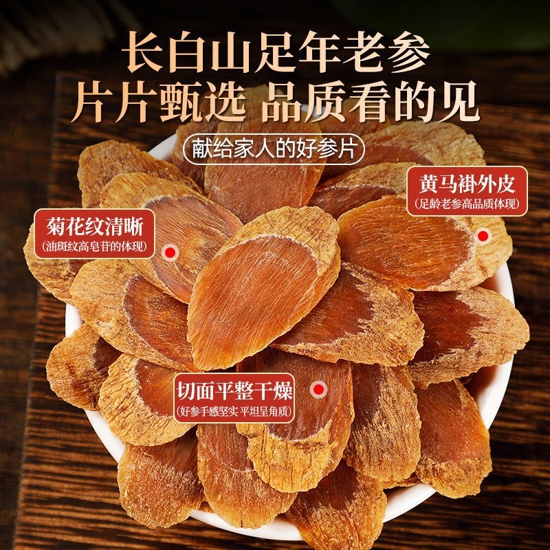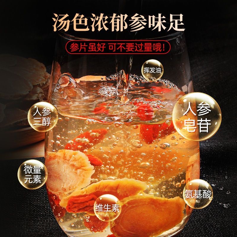 红参正宗长白山人参无糖大片特级野生人参泡水煲汤补气血100g罐装
