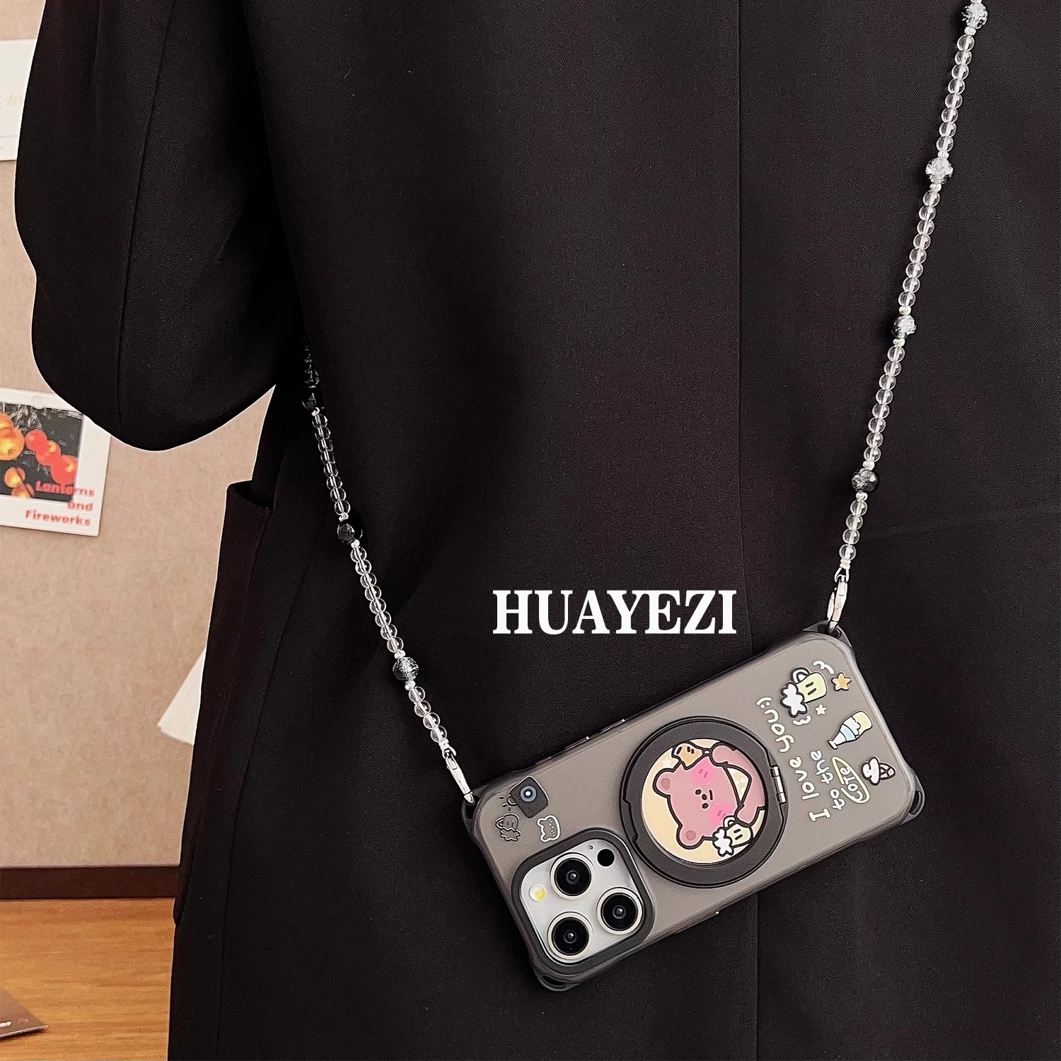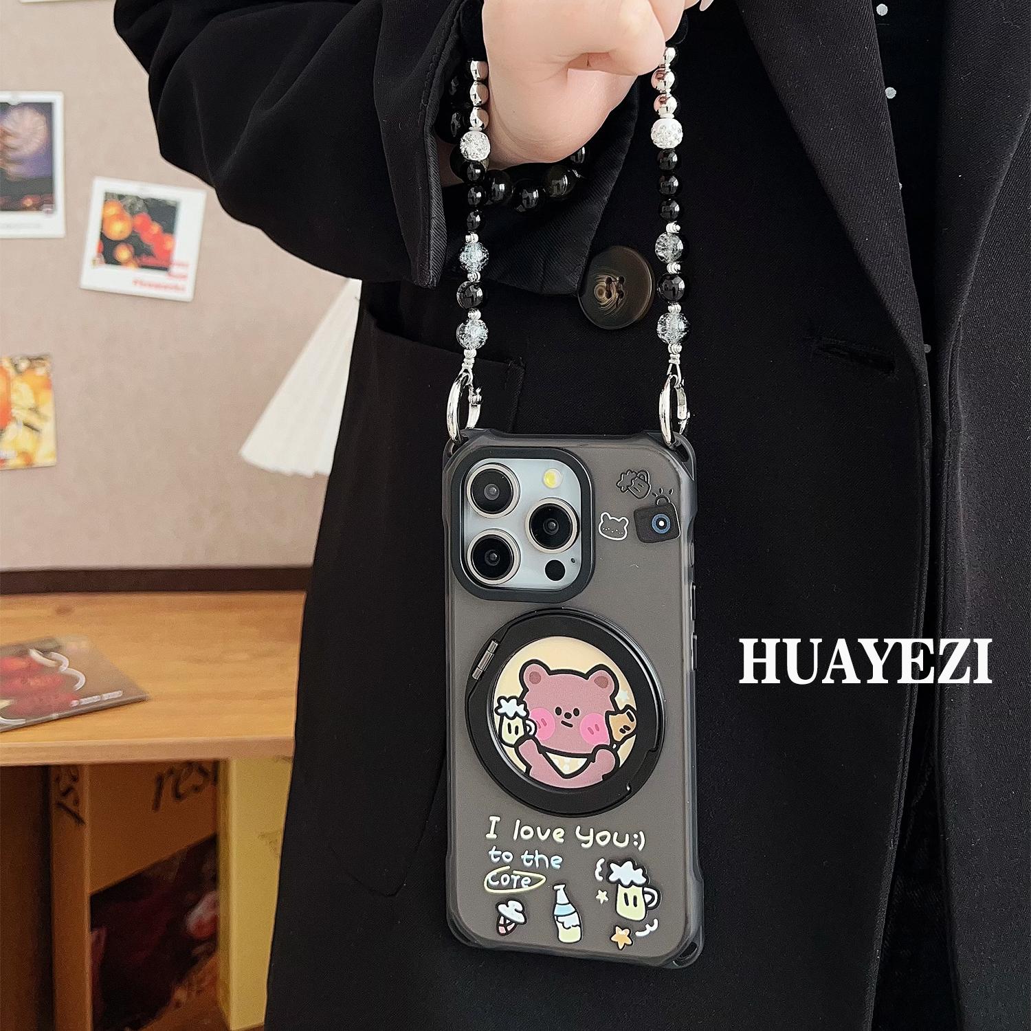 360旋转磁吸支架华为mate70手机壳带挂绳斜挎可背适用iphone17pro支点壳苹果14快乐小熊13四角开孔小米15手腕