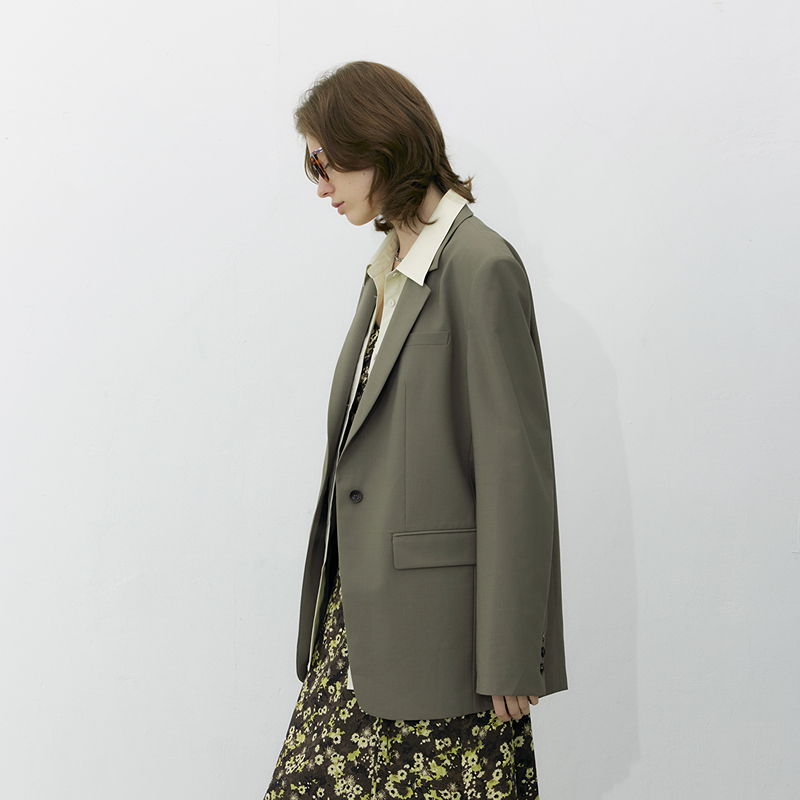 灰色自制小西服女oversize小众设计感宽松学院风卡其大码西装外套