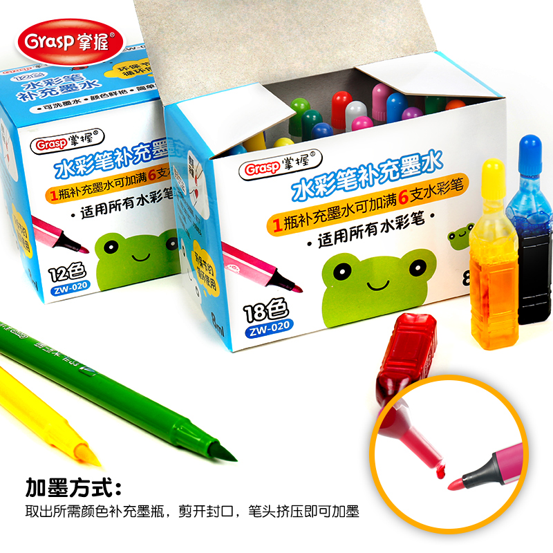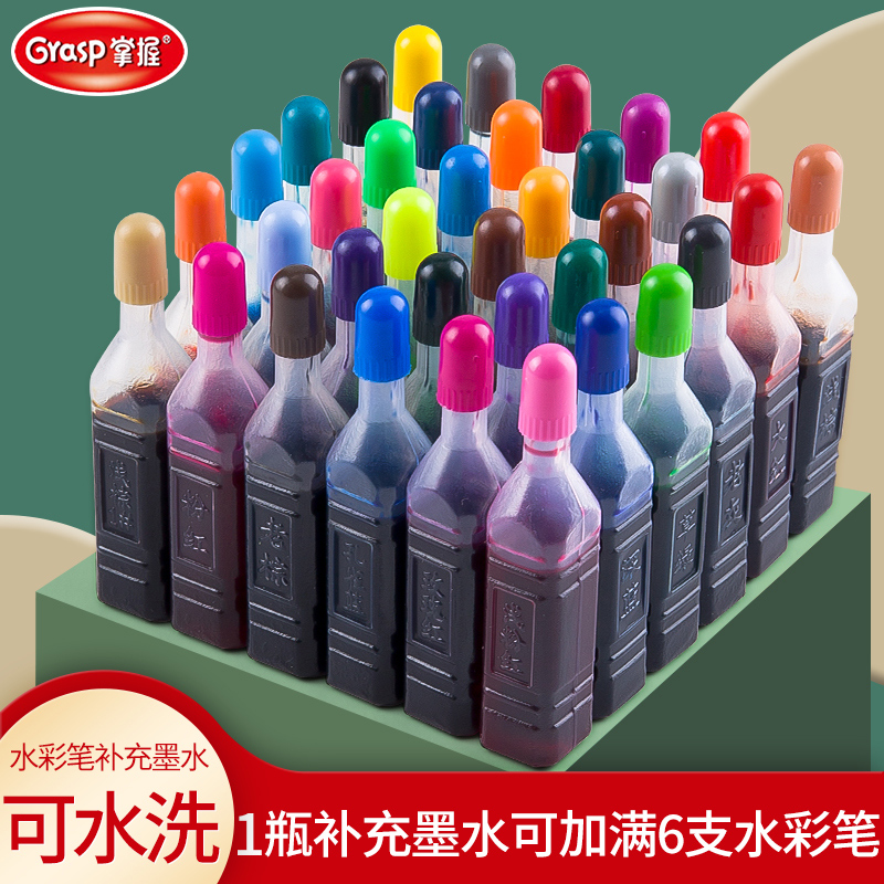 水彩笔补充墨水12色24色36色彩笔可加墨可水洗大容量喷喷笔补充液